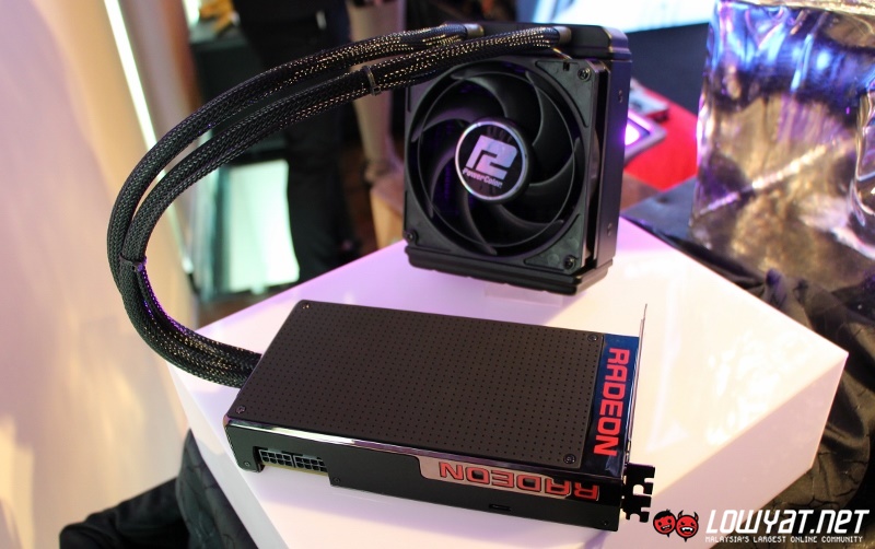 As some of you might know, the R9 Fury X only comes in reference design (at this moment) regardless of the brand that customers choose to purchase. The only way to distinguish between one brand to another is the packaging that the card comes in and the label on the card’s thermal fan. For the Malaysian launch event, AMD choose to showcase the PowerColor version of R9 Fury X.