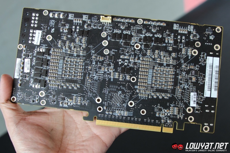 As for the dual Fiji card, there are even less information available about it but the sample card that AMD showcased at the Malaysian Fury X launch event did provide a number of tiny details regarding the card. For example, the card seems to be shorter than AMD’s previous dual GPU graphics card such as the R9 295X2 and HD 7990.