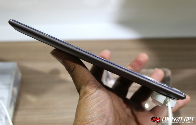 Design-wise, the ZenPad 7.0 is generally identical to the higher-end ZenPad 8.0 with a polished metal frame surrounding the front part of the tablet. There are no physical buttons on the front area of the tablet though as it utilizes on-screen navigational menus.