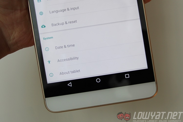 The PHAB Plus is powered by a 1.5GHz Qualcomm Snapdragon 615 octa-core chipset with 2GB of RAM, a 6.8-inch Full HD IPS display, 32GB of expandable storage, 13MP/5MP rear and front cameras, dual-SIM LTE, Dolby Atmos support, and a surprisingly small 3,500mAh battery – all for RM1,199. The software is still running on Lenovo’s Vibe UI on top of Android 5.0.2; one fun fact I came across in our media preview session was in the phone’s settings: the PHAB Plus is actually classified as a tablet.