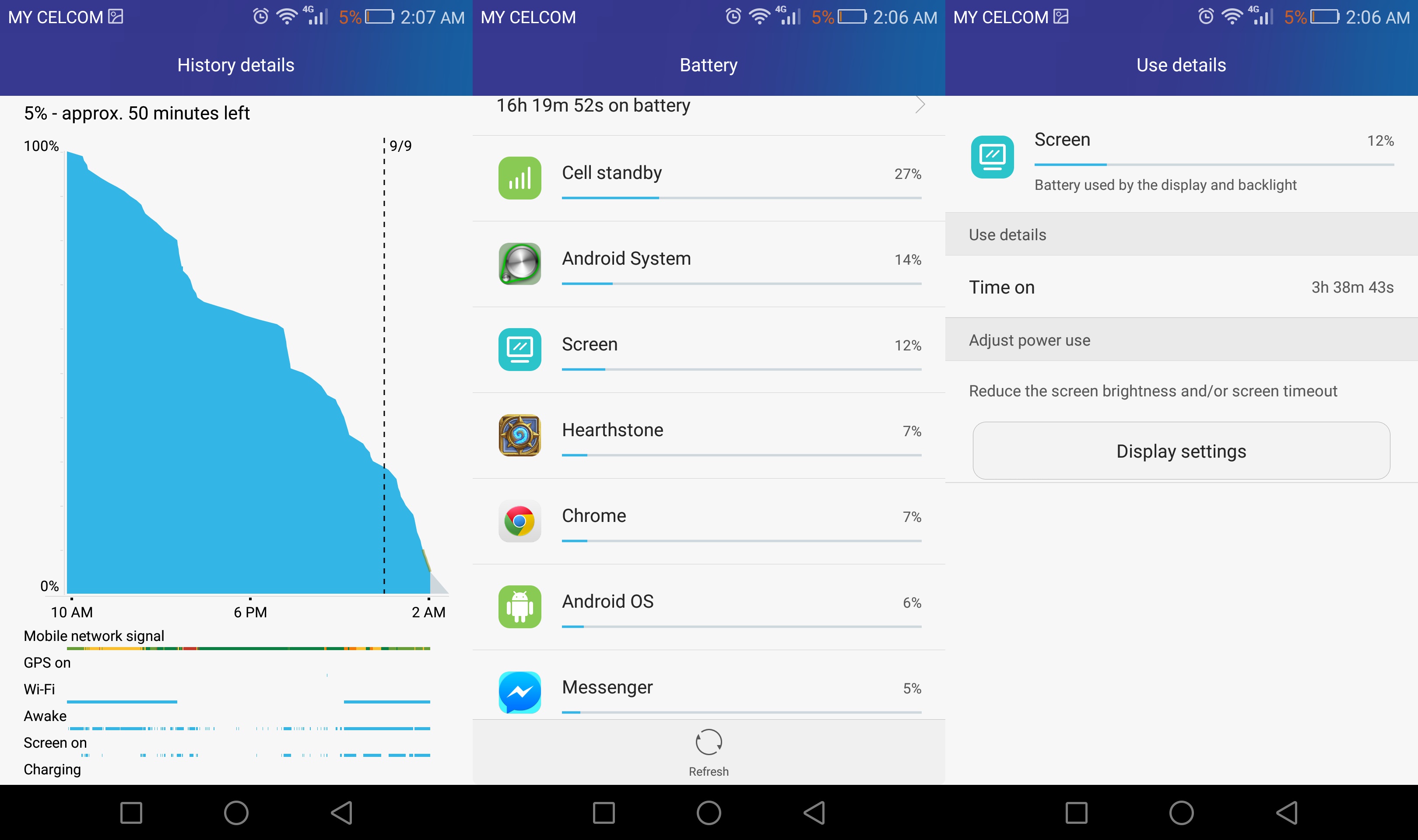 My typical usage habit involves tons of web browsing, instant messaging, and occasionally a few rounds of Hearthstone and navigation using Google Maps. With a screen on time of more than three hours and thirty minutes, I managed to drain the battery down to 5% in 16 hours. That’s more than enough battery life for any type of user in my books.