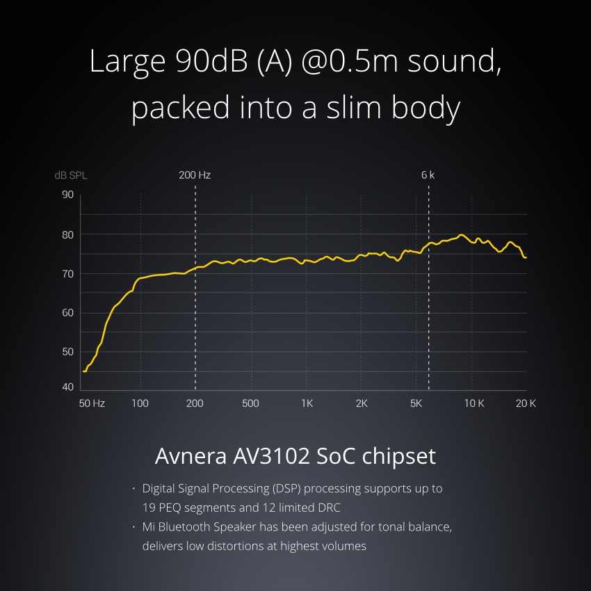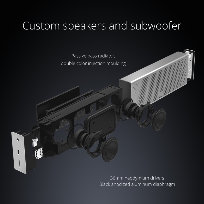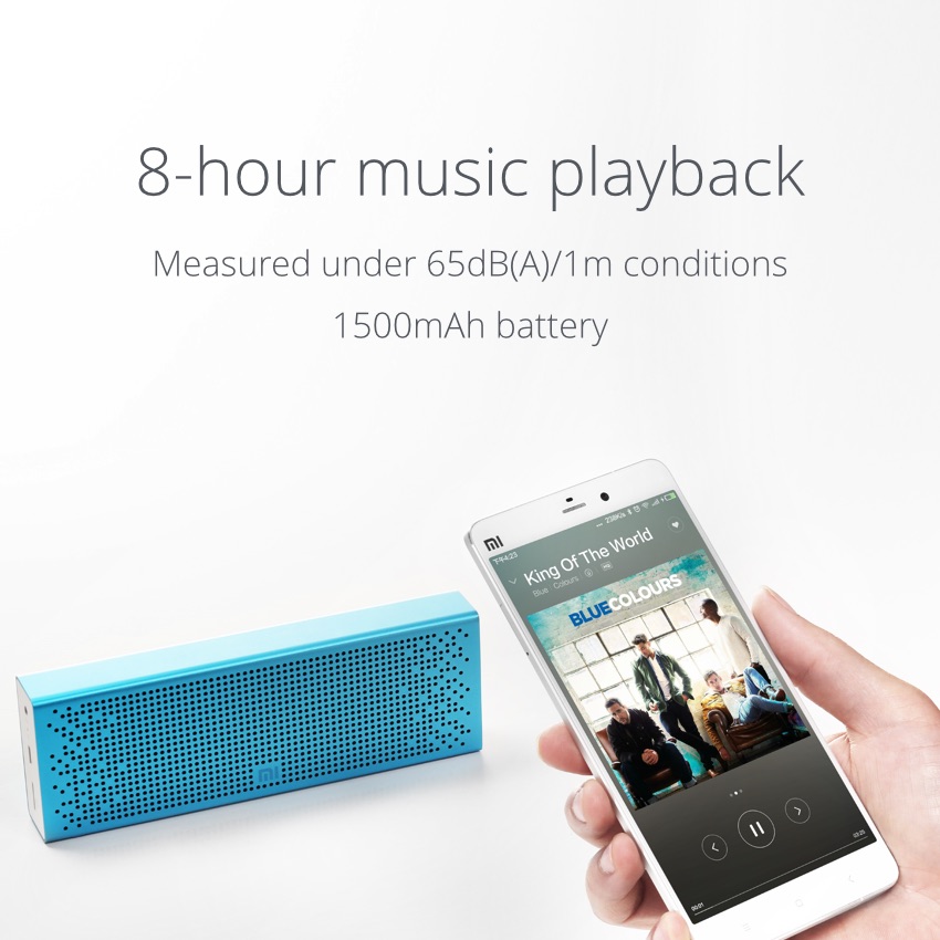 On the inside, the Mi Bluetooth Speaker packs passive bass radiator, double colour injection moulding, 36mm neodymium divers, and black anodised aluminium diaphragm; it allows for a large 90dB (A) @ 0.5m sound. There is also a large 1500mAh battery on board that allows for 8 hours of music playback.