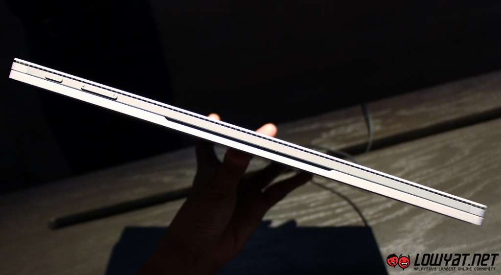 The tablet portion is not only thinner than a Surface Pro 4 at only 7.7 mm but it is also slightly lighter at 726 grams. The Surface Book’s keyboard base is actually heavier than its tablet portion but not by much, at only 789 to 853 grams. Together, Microsoft still managed to keep the Surface Book’s weight (1.64kg) at under 2kg.