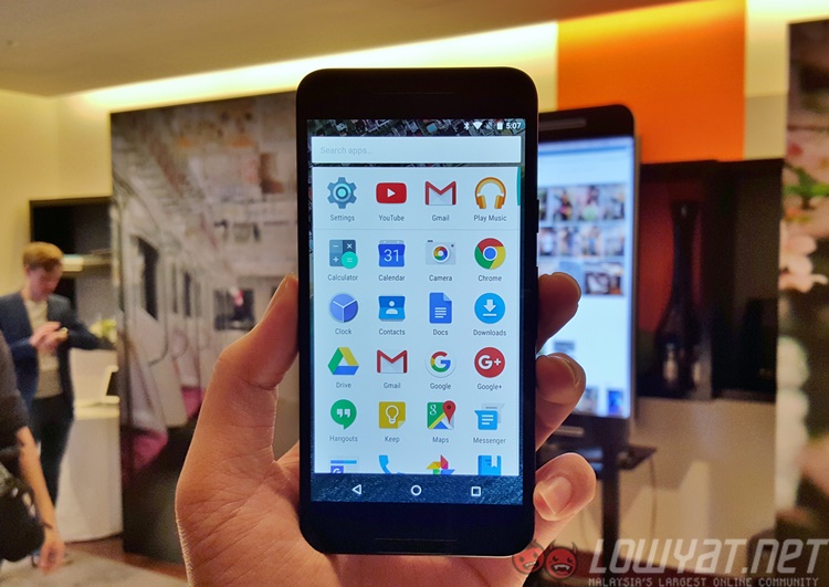 The Nexus 6P on display was the Black version (though it really is a dark grey tone than black), while one of the Google staff at the demo area was using his own Silver Nexus 6P. In all honesty, the Silver variant is without a doubt one of the best-looking metal-clad smartphones released in recent times – there’s a sense of class in the way the alloy reflects light, while the contrast with the black camera strip at the top gives it a uniqueness that most phones today lack (just don’t tell that to ZTE).