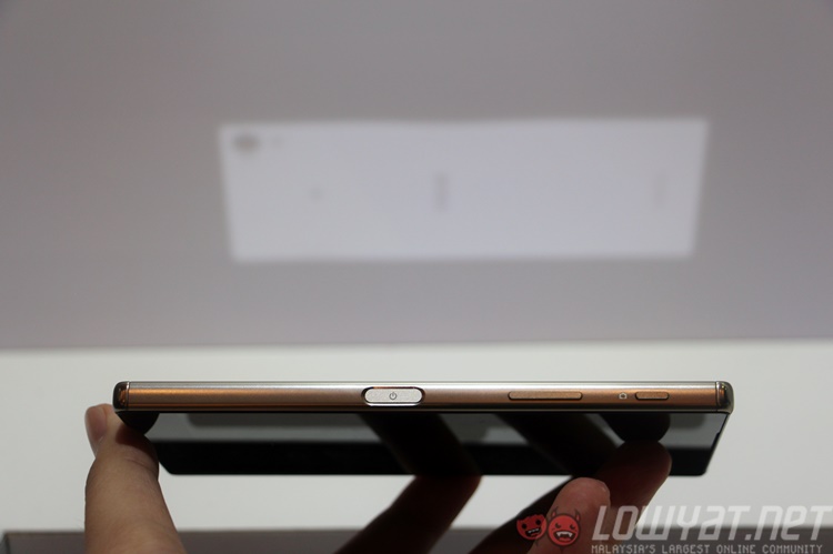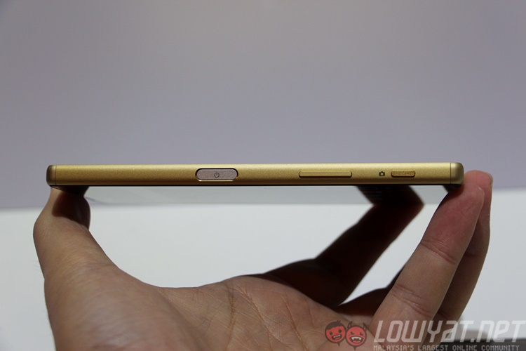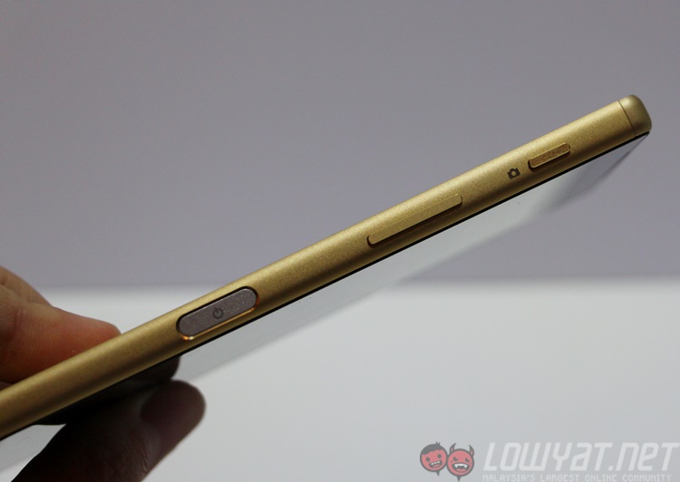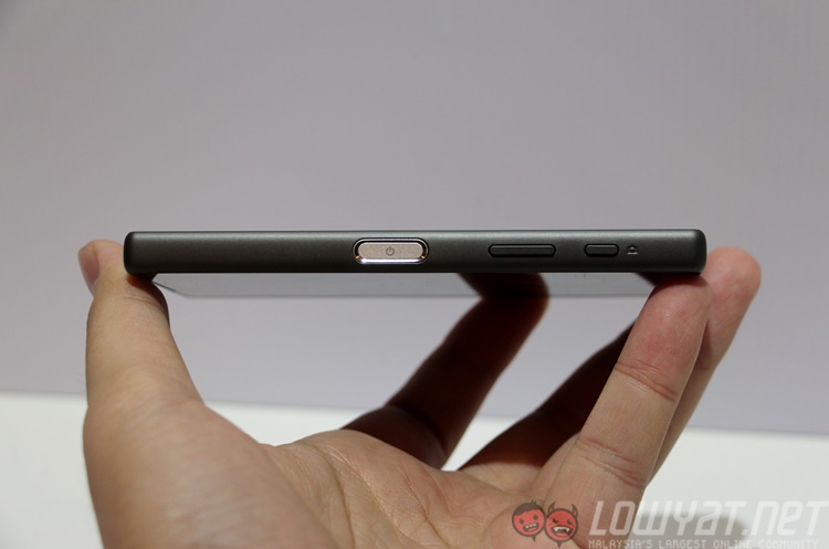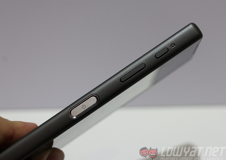 Each side button in the Z5 series are customised based on their size. The Z5 Compact’s side buttons were a little too closely spaced together for my liking. All buttons are located on the right side, and volume rocker is placed between the power button (located at the niddle). The camera shutter button, which is close to the bottom of the right, sits far too low to be pressed while the phone is in portrait mode.