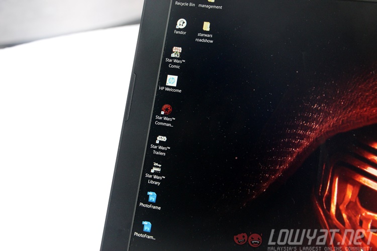 What’s worth noting also is that HP also made sure the Star Wars experience does not just start from the laptop, but in the packaging itself. Everything appears thoughtfully considered, from the black-and-red retail box featuring Darth Vader and the words “You don’t know the power of the Dark Side”, to the grey polystyrene safety foams moulded to look like a Twin Ion Engine fighter. Inside, you’ll also find a box for the power brick, again emblazoned with Darth Vader.