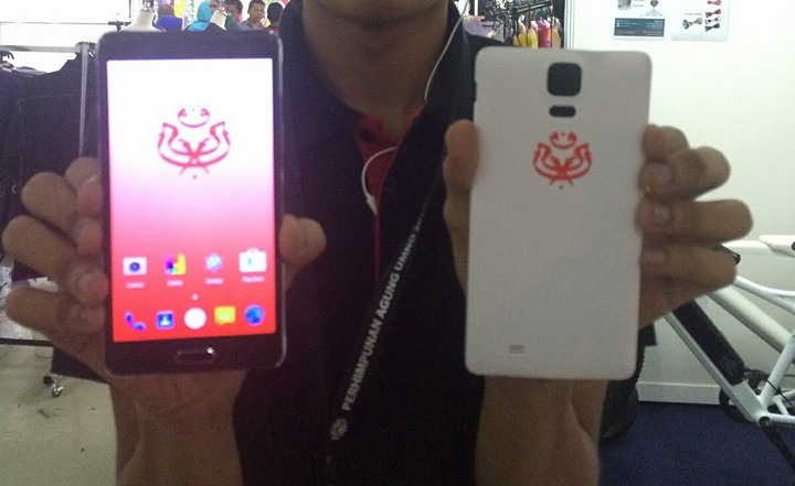 At the ongoing 2015 UMNO General Assembly, attendees can take a look at an unusual, if not interesting, new product for sale: an UMNO-branded smartphone, the first ever smartphone released by the political party.
