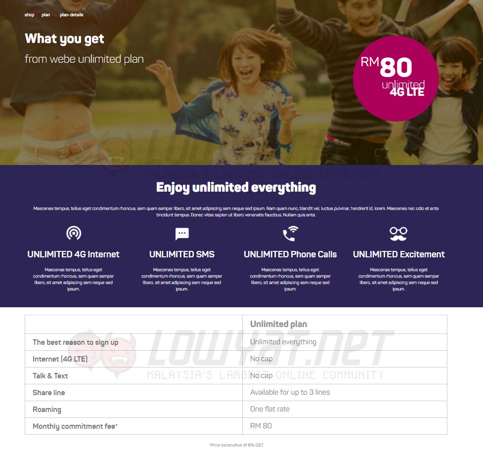 Meanwhile, the web cache also showed that webe will be offering an unlimited plan for RM 80 per month. By unlimited, the telco actually meant unlimited in every single aspect of the plan: unlimited LTE internet, and unlimited calls as well as unlimited SMSes.