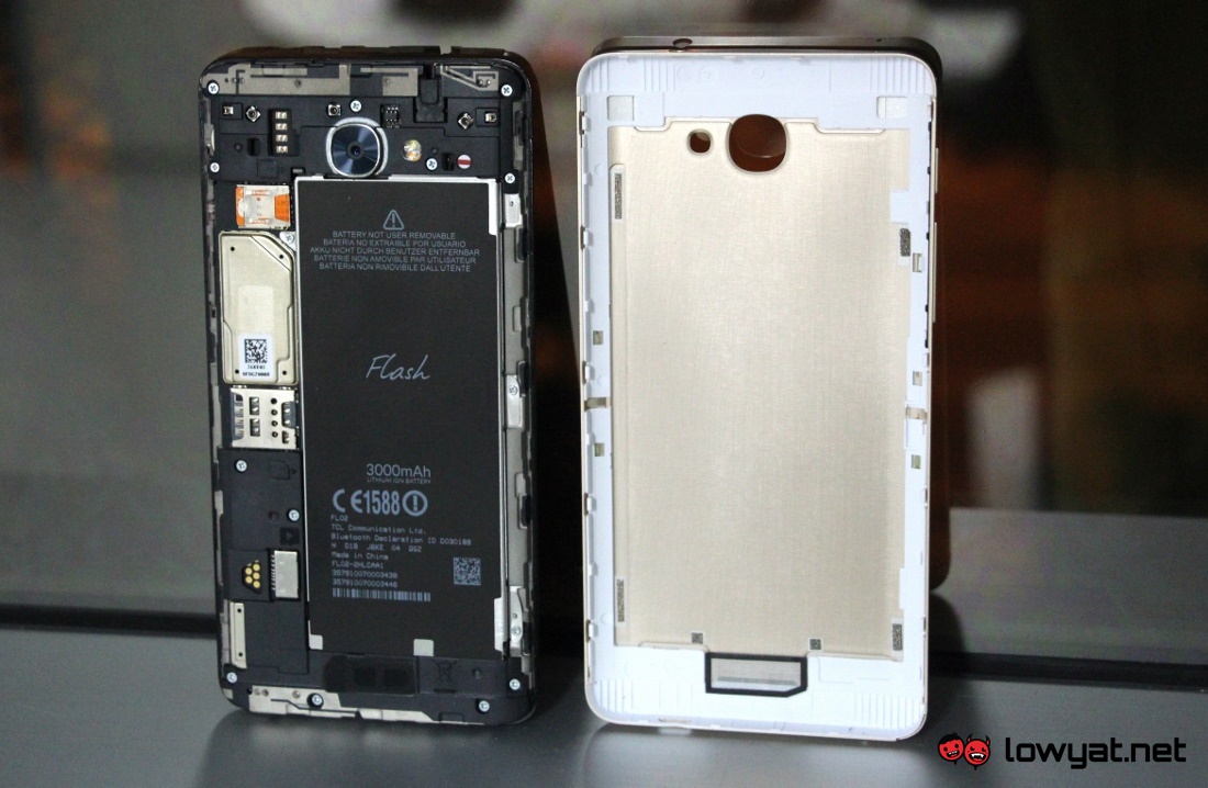 Given the asking price though, it is not surprising that Flash – a sub-brand of TCL Communication, the same people behind Alcatel mobile devices – implemented the material into Flash Plus 2 in a slightly different manner. Instead of being a full metal bodied device, only its removable casing is actually made from metal (aluminum, to be specific).