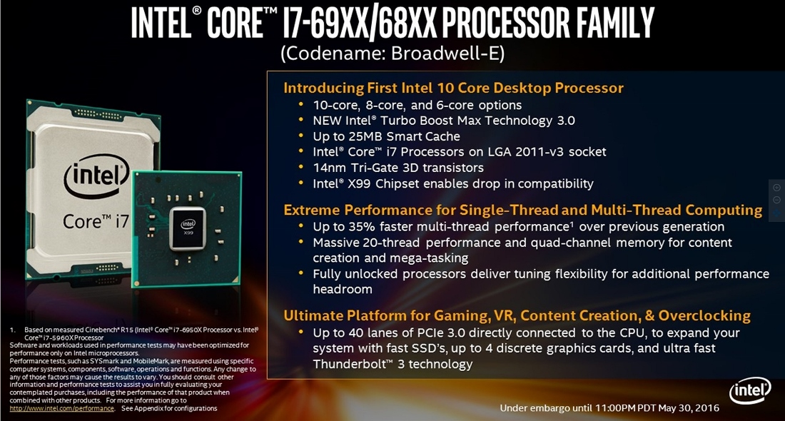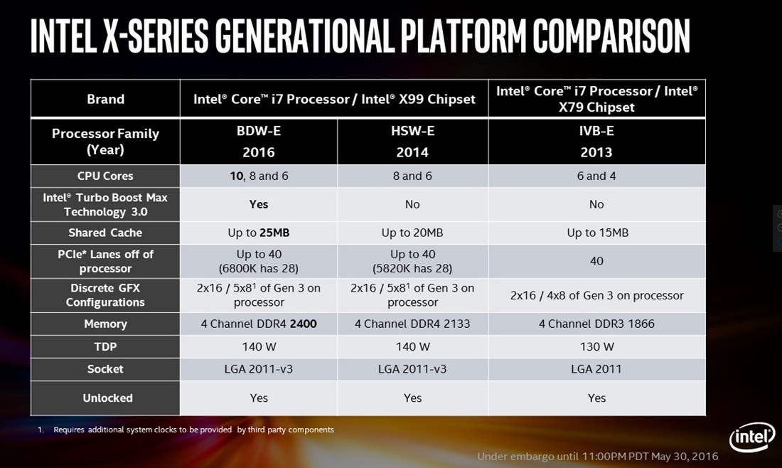Here are the general specifications of all four of the Broadwell-E processors that Intel has launched today: