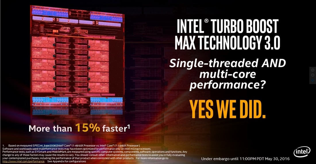Built using 14nm tri-gate 3D transistors, the processor also supports the new driver-based Intel Turbo Boost Max 3.0 technology which automatically determines the most resource-hungry workload, and allocates it to the fastest core in the chip.