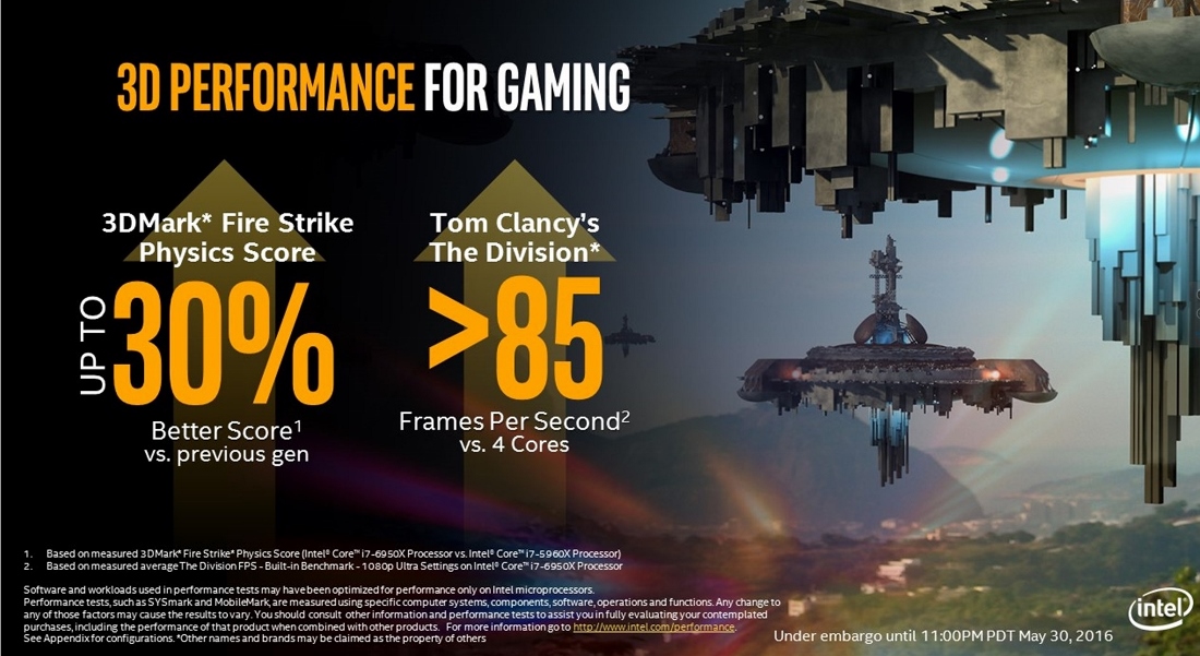 At the same time, Intel also included three new overclocking features into the chip such as per core overclocking, AVX ratio offset, and VccU voltage control. In terms of performance improvements, here are what being claimed by Intel: