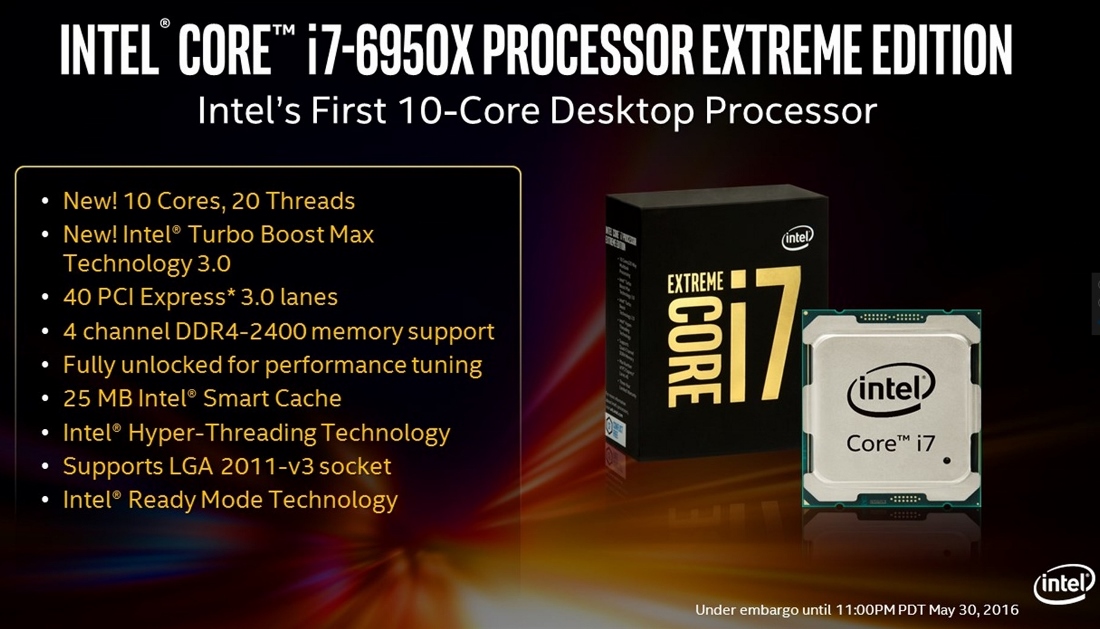 It seems that the rumours were indeed true. Today, Intel has officially unveiled its brand new Intel Core i7 Extreme Edition, the Core i7-6950X. Said to be the most powerful consumer-level Intel desktop processor at the moment, it is the successor to the previous Core i7 Extreme Edition processor – the Core i7-5960X – which was released in 2014.