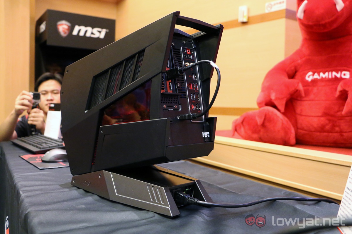 Despite the size, MSI’s engineers have crafted the Aegis to not only hold the powerful CPU and GPU, there’s even space for two RAM slots, five storage “bays” (2x NVMe PCI-e SSD, 2x 3.5″ HDD, 1x 2.5″ SSD), and even a DVD drive. What’s more, MSI designed the chassis to allow easy access to the components, which are user-upgradeable.