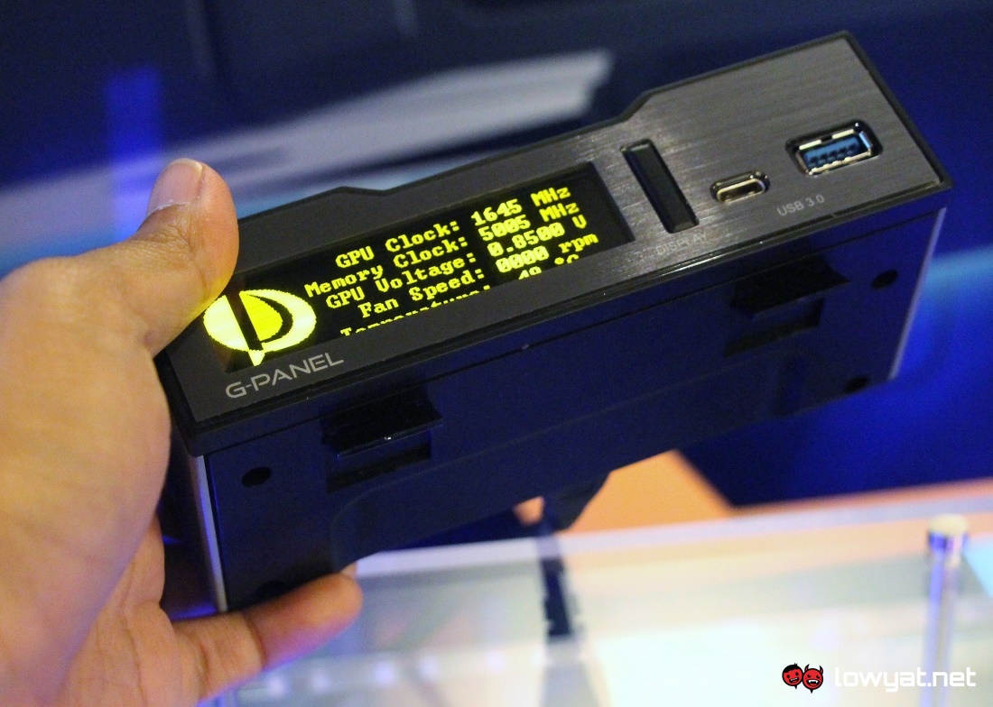 Alongside the display, the G-Panel also comes with a set of USB 3.0 Type-A and Type-C ports on its front area. While we were told that it works with any GeForce graphics card regardless of the card’s manufacturer, it is not clear whether the support is limited to just Pascal-based cards or will also include the older Maxwell-based cards.