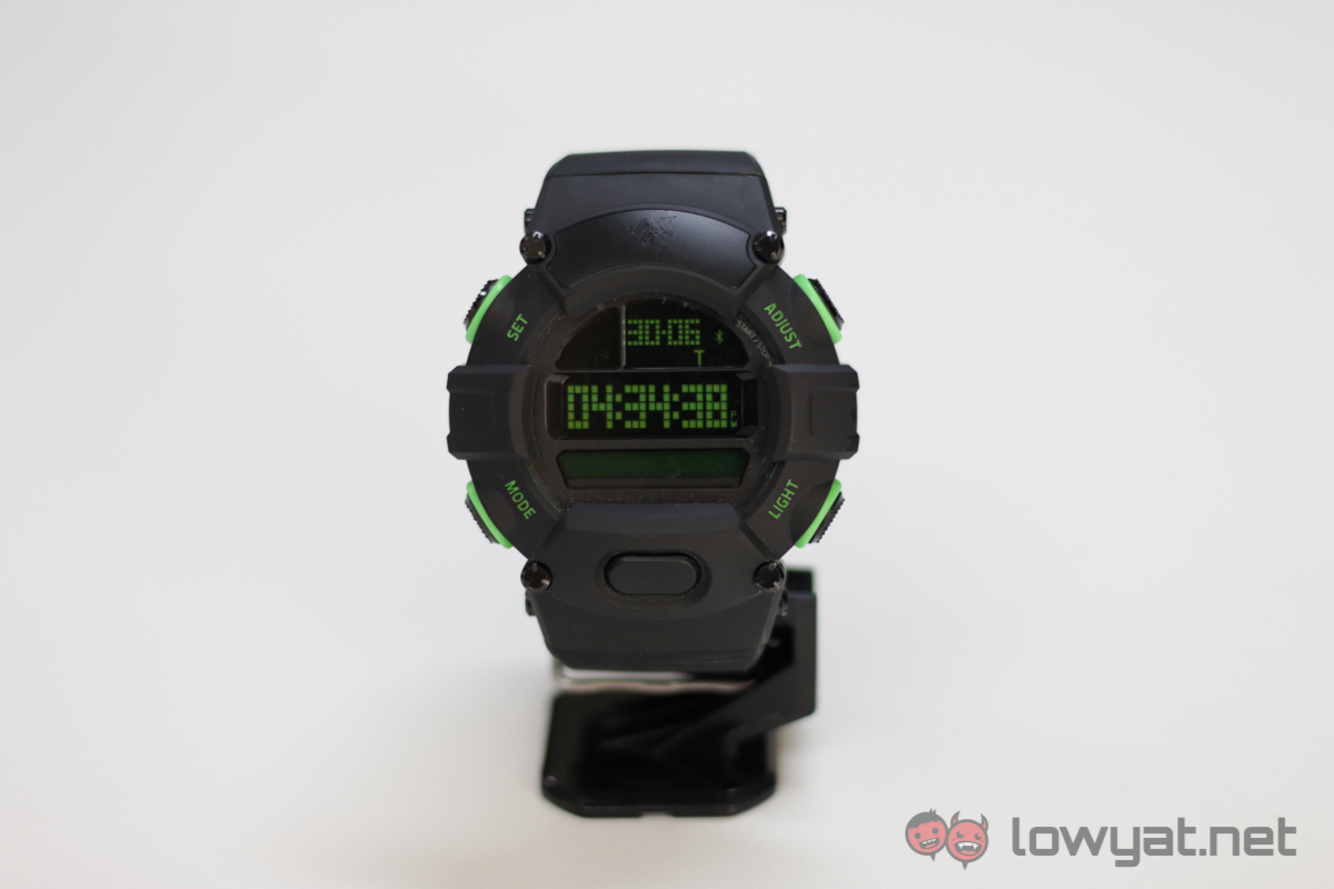 The additional LCD display is the “smart” part of the watch. It is designed to display any additional information from the pedometer or incoming messages. It does this in a rudimentary way, with only the most basic of details appearing. The type of information displayed can be customised and controlled from Razer’s Nabu app.
