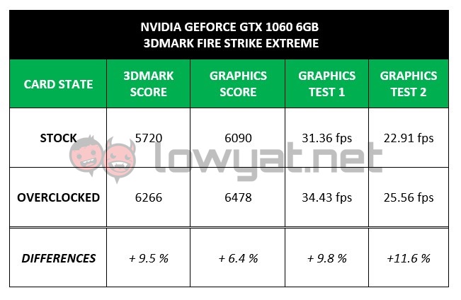Since we only performed a simple GPU and memory overclock using EVGA PrecisionX OC software without tweaking the card’s default fan, voltage, and thermal setting, this showed the huge amount of overhead available on the GTX 1060. With that, it seems possible to push the card even further with deeper tweaks and higher performance thermal solutions.