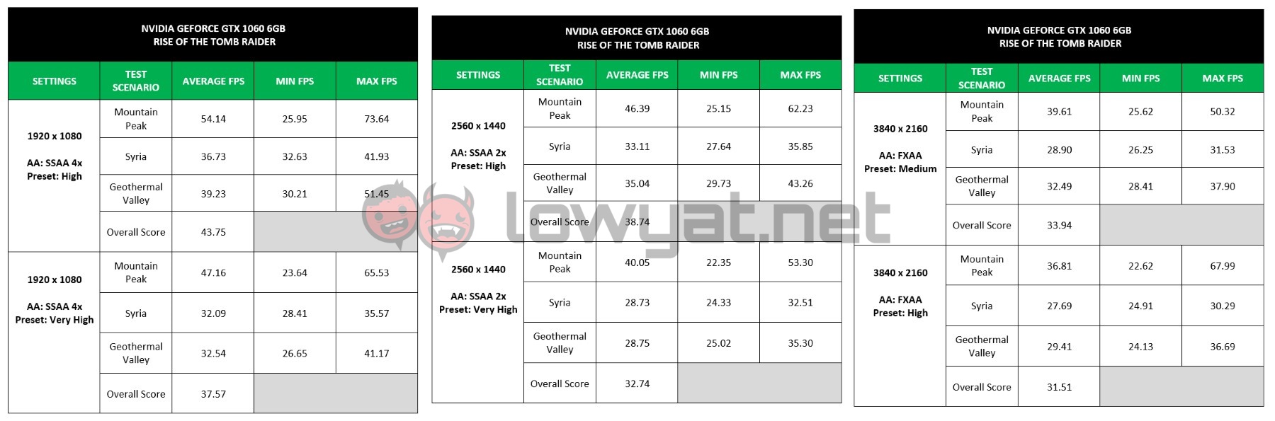 The GTX 1060 generally performs quite well in our DirectX 11 game tests at 1080p and 1440p alongside the SteamVR Performance Test. That being said, the results also depends on the game’s anti-aliasing settings especially on 1440p and 4K resolutions. The same can be said for DirectX 12-based games too, as shown below: