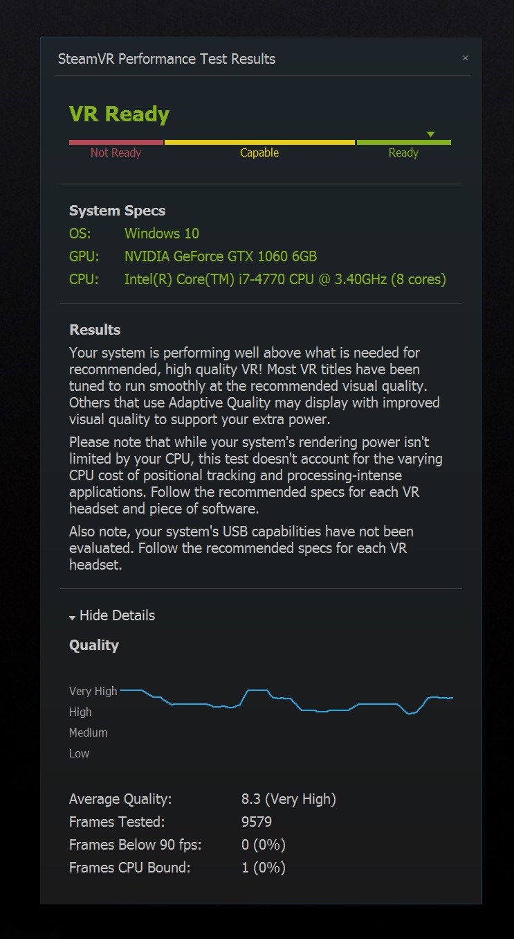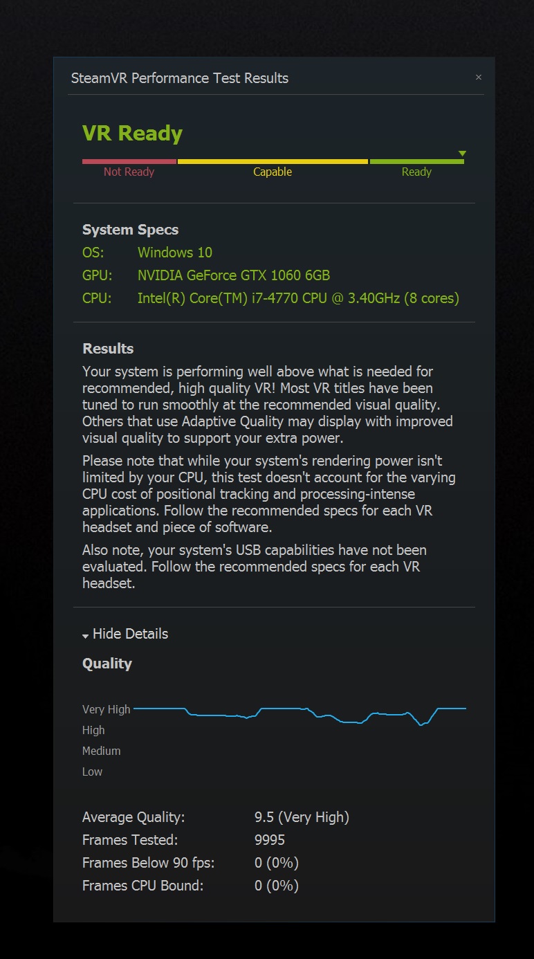 In terms of real life results, the overclock settings helps our card achieve more than 10% of performance increase in most of our tests. It also increased the system’s SteamVR rating from 8.3 to 9.5 which is quite impressive.