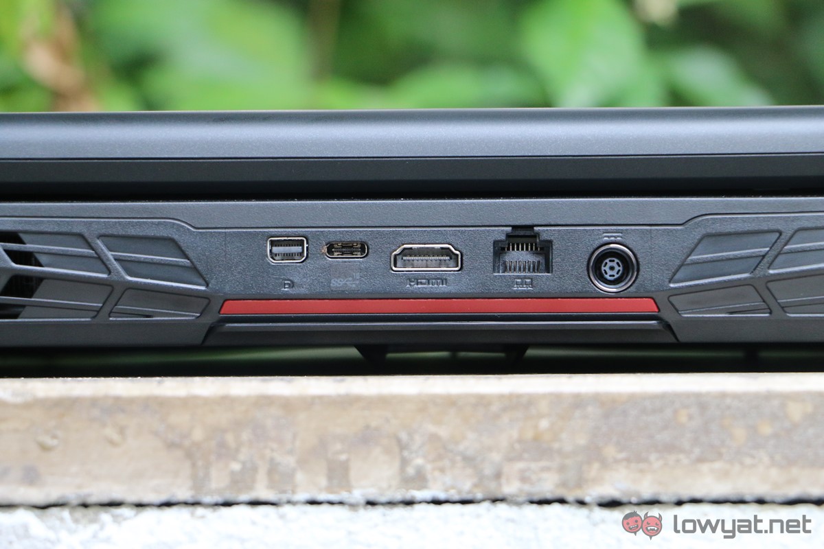 The GT72 follows all of MSI’s “VR Ready” 2016 gaming laptops, where its external display ports are all located at the back of the device. HDMI, mini DisplayPort, and even a USB Type C port are all here for easy connections to VR systems.