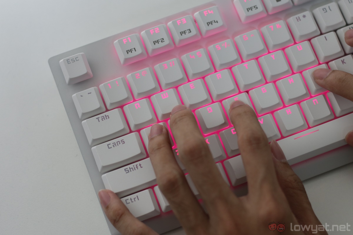 It also comes with RGB lighting, which coupled with the white body results in some fascinating effects. The Gram’s switches, on the other hand, are Tesoro’s very own Agile switches, which are made by Kailh. In comparison to Cherry MX switches, I’d say these Agile switches feel a lot like Cherry MX Green switches: they’re tactile and heavy (in the sense that they require more force to press down), but with shorter travels.