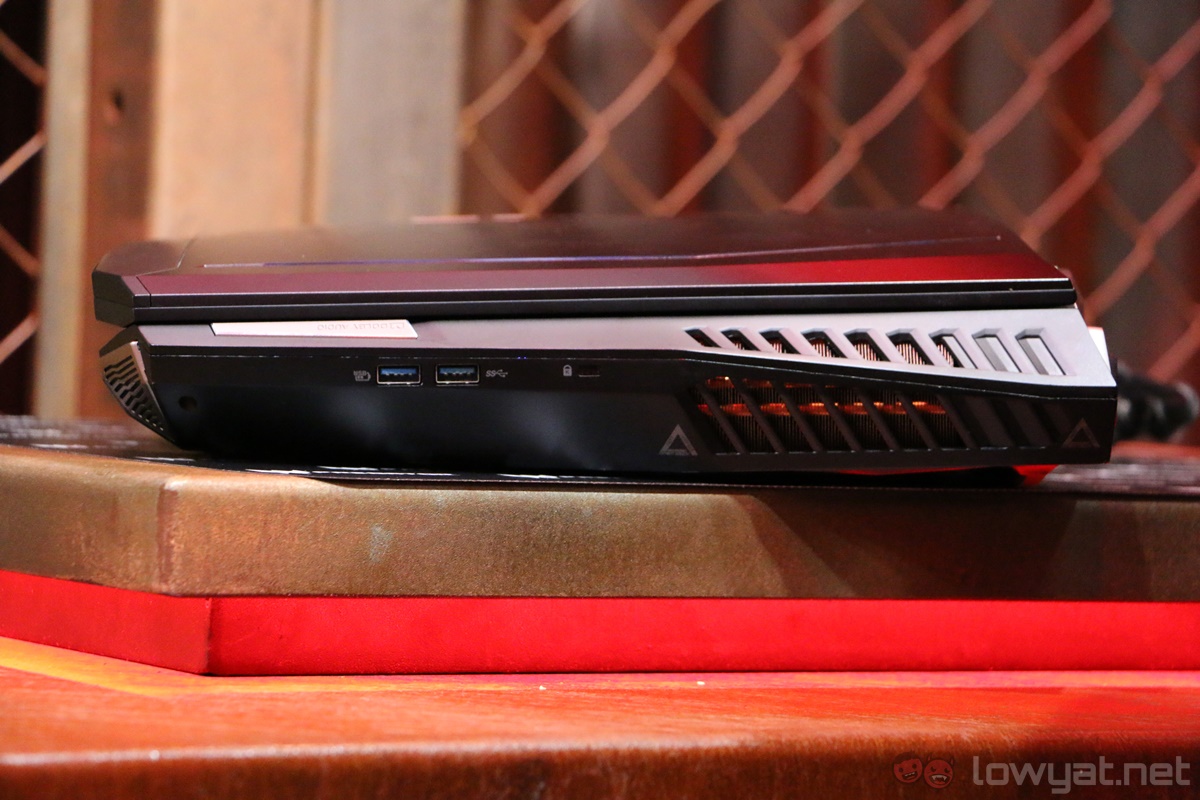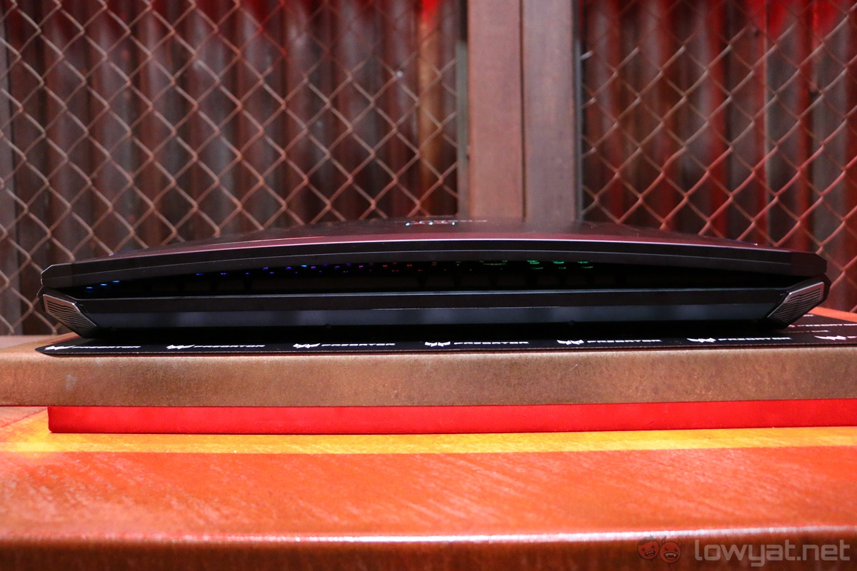 Technically, the Predator 21 X is a gaming laptop, but we imagine it wouldn’t be a very pleasant experience to bring it out and about. For one, it weighs a whopping 8kg, and the curved display of the 21 X doesn’t actually close flush; there is a gap between the display and keyboard. Applying some pressure on the top cover causes it to flex well, which is pretty worrying.