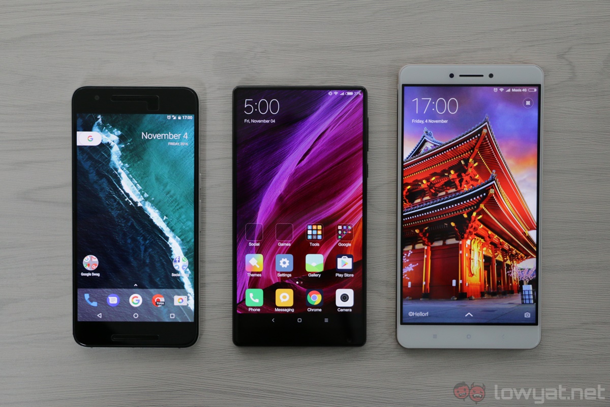 From left: Nexus 6P, Xiaomi Mi Mix, Xiaomi Mi Max.