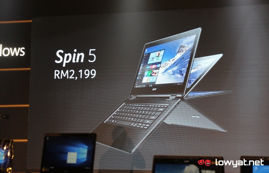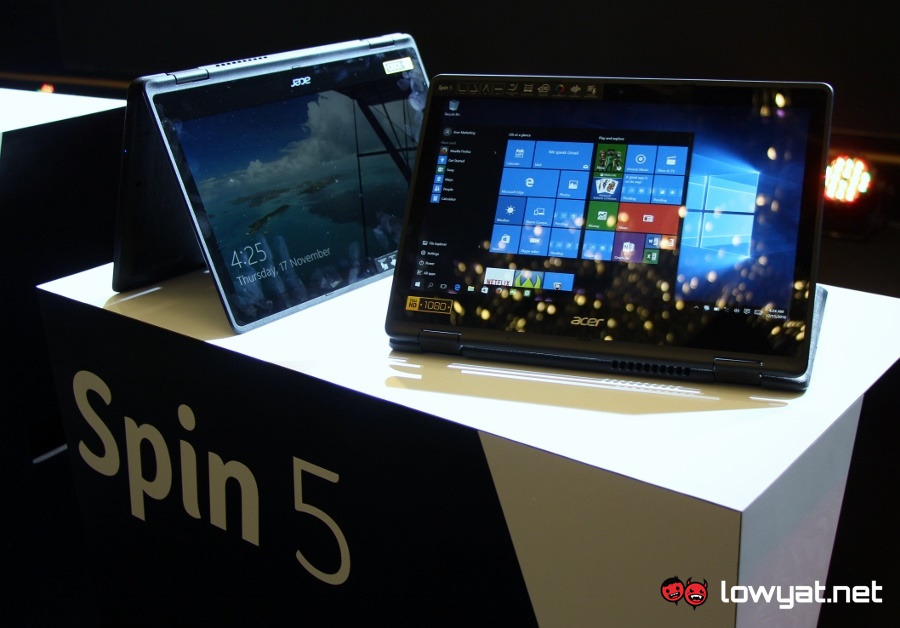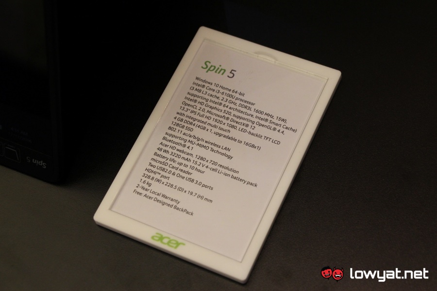 As for Spin 5, it also features a 13.3-inch full HD IPS display although it is powered by Intel Core i3-6100U processor instead. Other than that, the convertible is also equipped with 4GB DDR4 RAM, 128GB solid state drive and battery life of up to 10 hours through its 3,220mAh 4-cell battery.