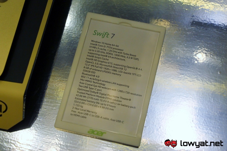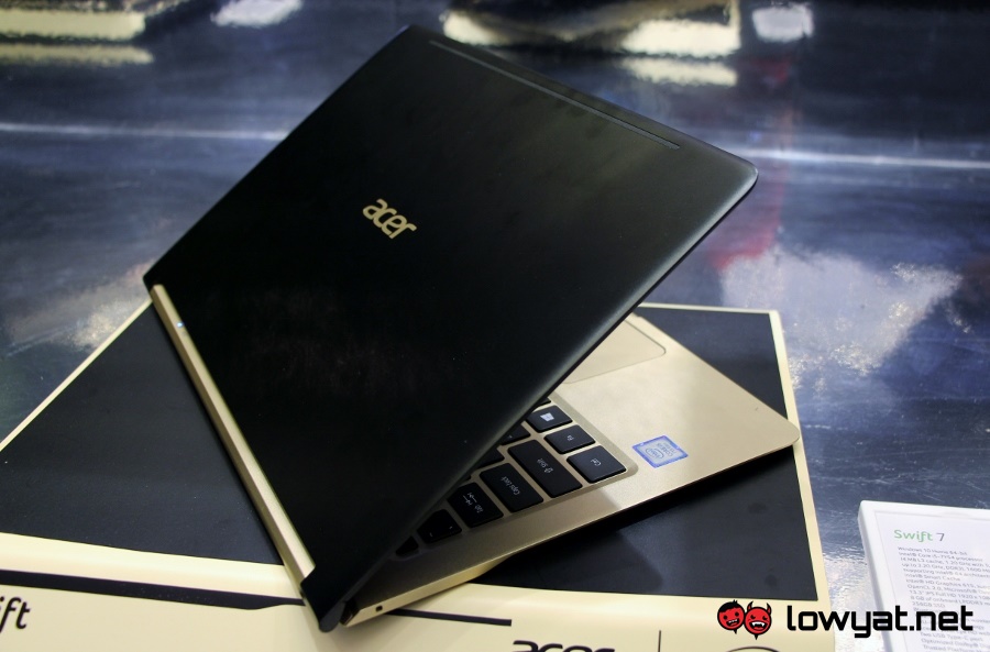 With a thickness of only 9.98mm as you able to see from our hands-on experience right here, the sleek Swift 7 comes with 13.3-inch IPS full HD (1920 x 1080) display that is protected by Corning Gorilla Glass. Powered by Intel Core i5-7Y54 processor, the 1.1kg laptop is also equipped with 8GB LPDDR3 RAM and 256GB solid state drive.