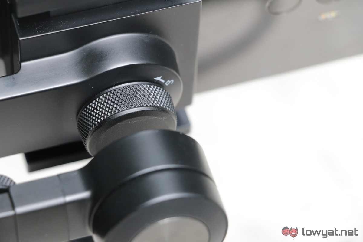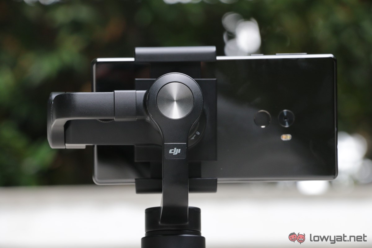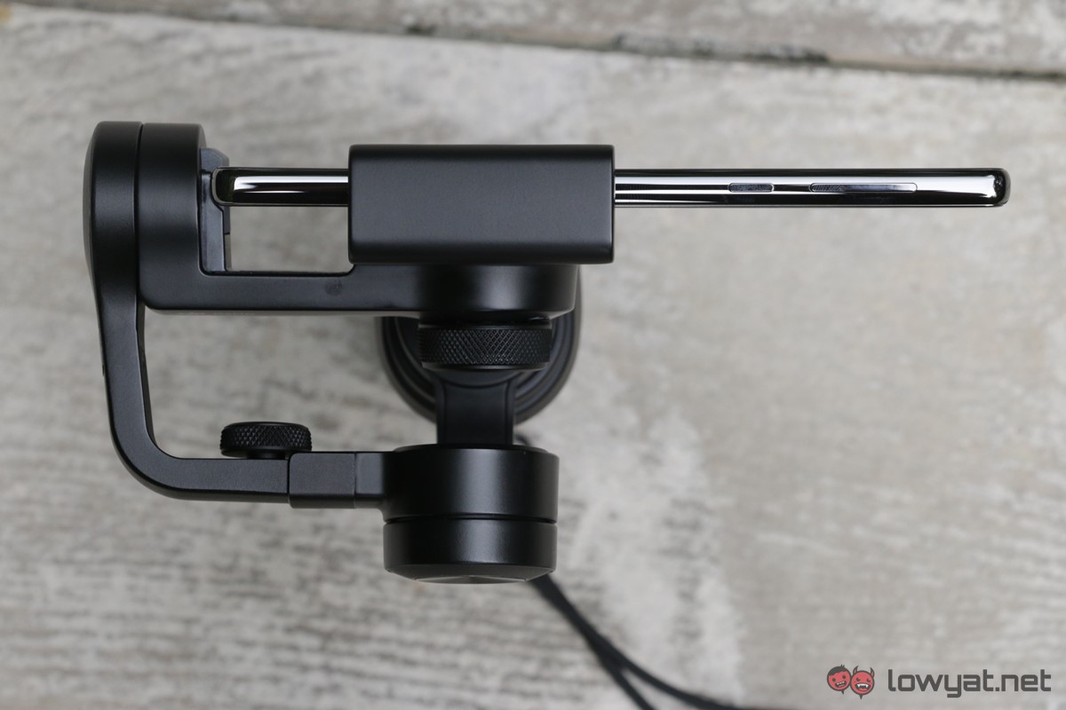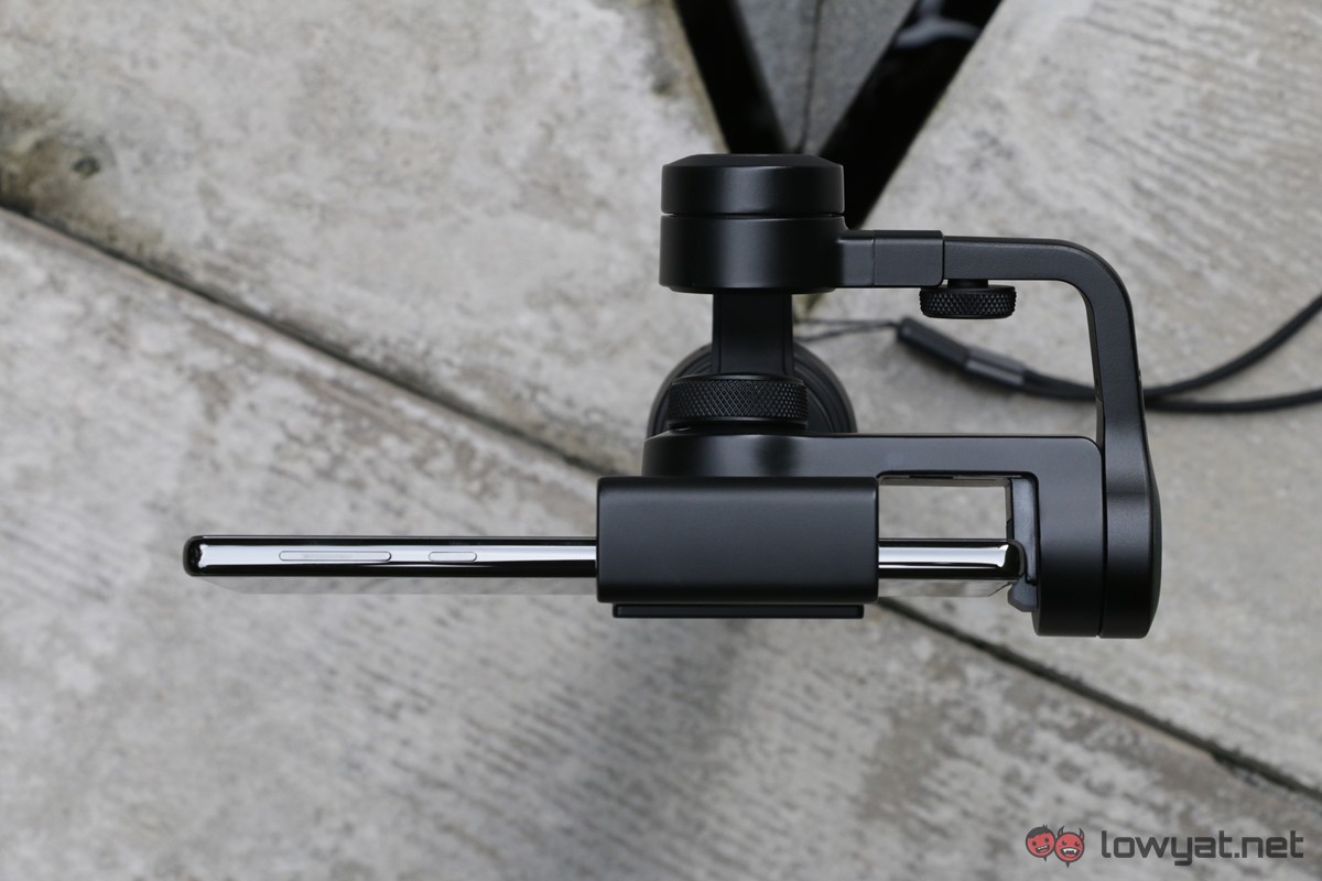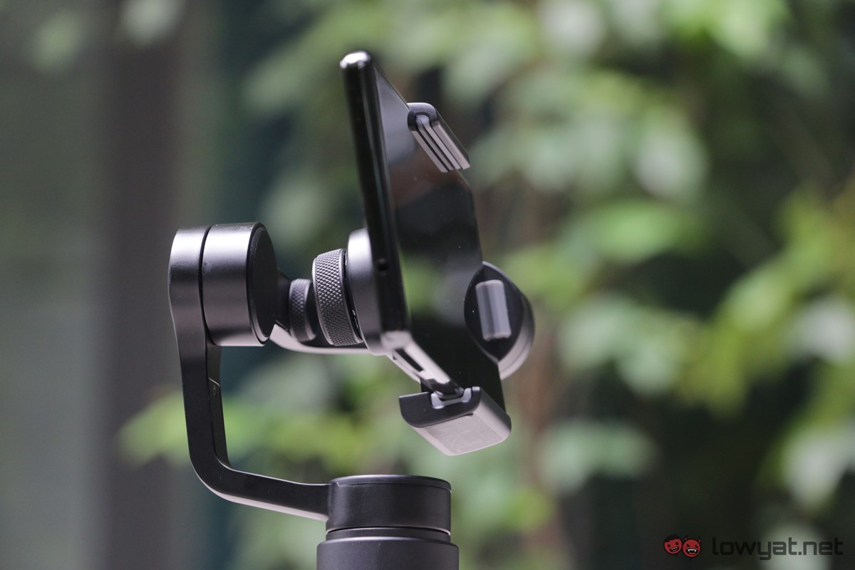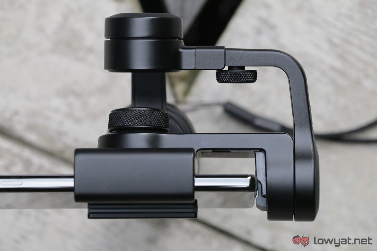 Build quality on the Osmo Mobile is fantastic. Everything from the handle to the buttons feels durable and firm, and the smartphone holder parts are not flimsy. Because the smartphone clamp uses a knob, the phone is very snugly secured with zero chance of falling out while moving.