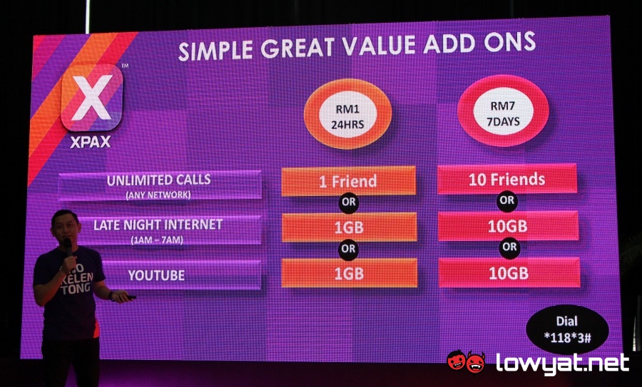 At the same time, Celcom has also unveiled new add-on plans for the refreshed Xpax. For a nominal fee, customers can choose to have whether unlimited calls, late night Internet (a.k.a the famed Internet Burung Hantu), or YouTube. Price-wise, the 24 hours pass will costs user RM 1 while the 7 day pass is priced at RM 7.