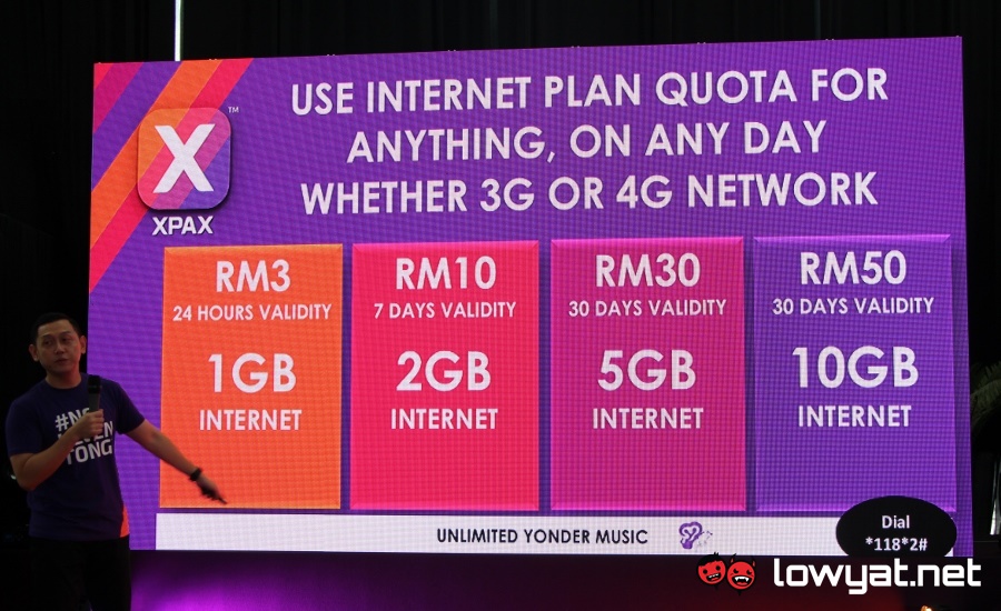 In other words, the new Xpax plan no longer separates the data quota into Internet, Facebook, and YouTube. Instead, all Internet applications will be subjected to a single quota regardless of whether on 3G or 4G network. That being said, customers will continue to have unlimited access to Yonder Music.