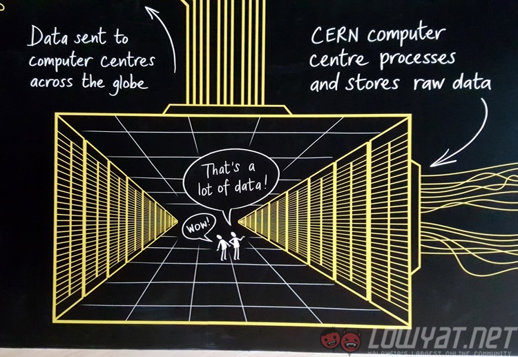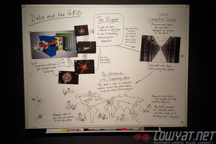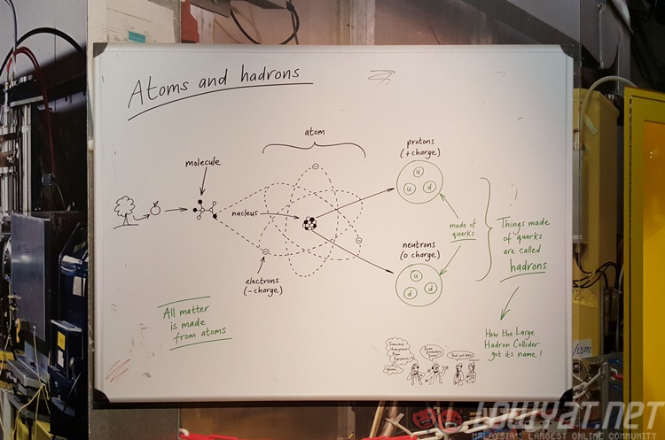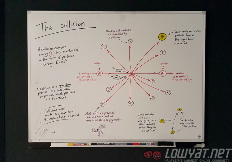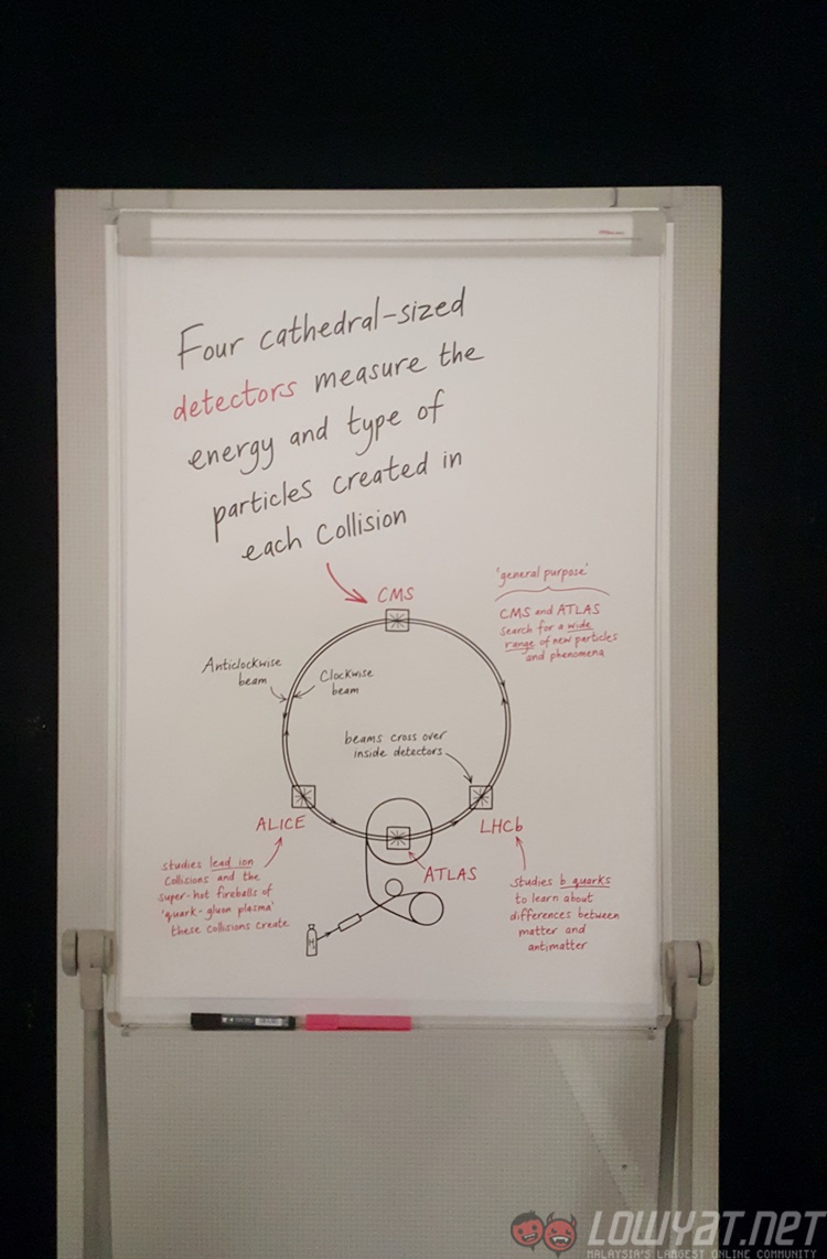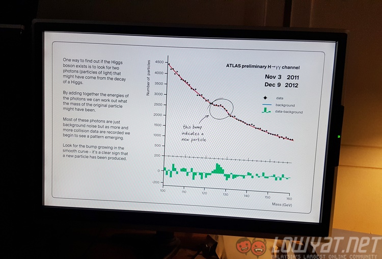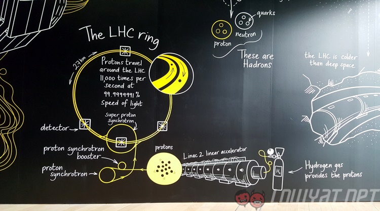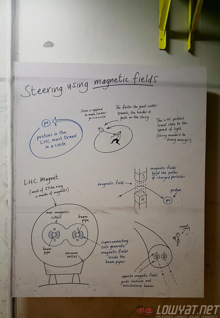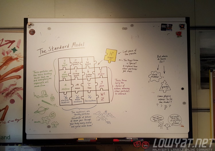 As someone with only a passing knowledge of physics, the exhibition does well to engage casual visitors like me on the basics of particle physics (beyond what binge-watching The Big Bang Theory has “taught” me). Scattered throughout the exhibition area are posters, whiteboards and even a cool video demonstration that uses simple images and charts to explain the process of smashing to atoms at near-light speeds – which is what the Large Hadron Collider is all about.