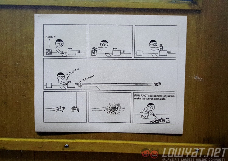 Towards the end, there’s even a mockup of the workspace of the employees at the LHC. Posters featuring physics-related jokes, events and personal photos are faithfully represented.