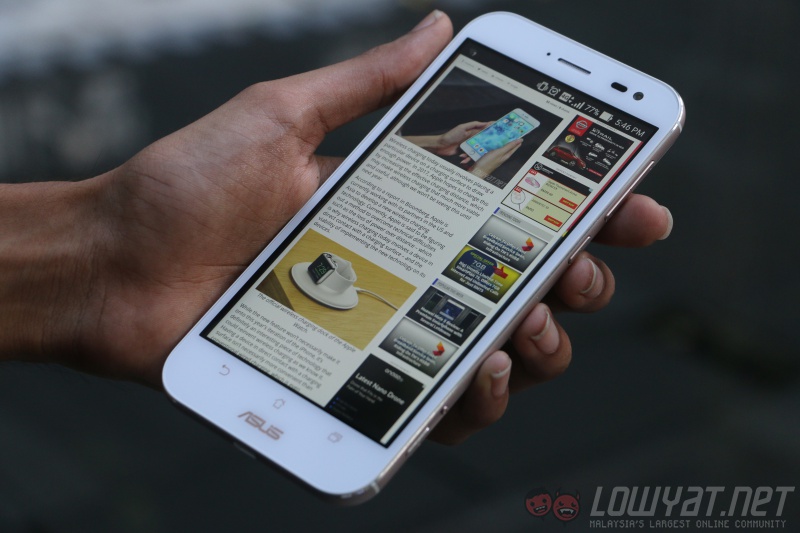 Before reviewing the ZenFone Zoom, I was using a device with an AMOLED display. Needless to say, the Zoom’s IPS LCD display produces colours that aren’t as vibrant or punchy. That being said, the viewing angles are good, and the whites are much more accurate in comparison to an AMOLED panel, which usually has a yellowish tint. Other than that, the 1080p display – which has a pixel density of 400ppi – is sharp and detailed.