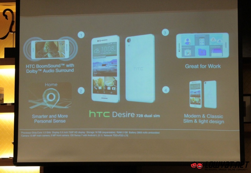Other than that, Desire 728 will also be released in Malaysia soon. Comes with a 5.5-inch HD (1280 x 720) display and 1.3GHz MediaTek MT6753 octa-core processor, it also contains 2GB of RAM and 16GB internal storage with support for microSD card.