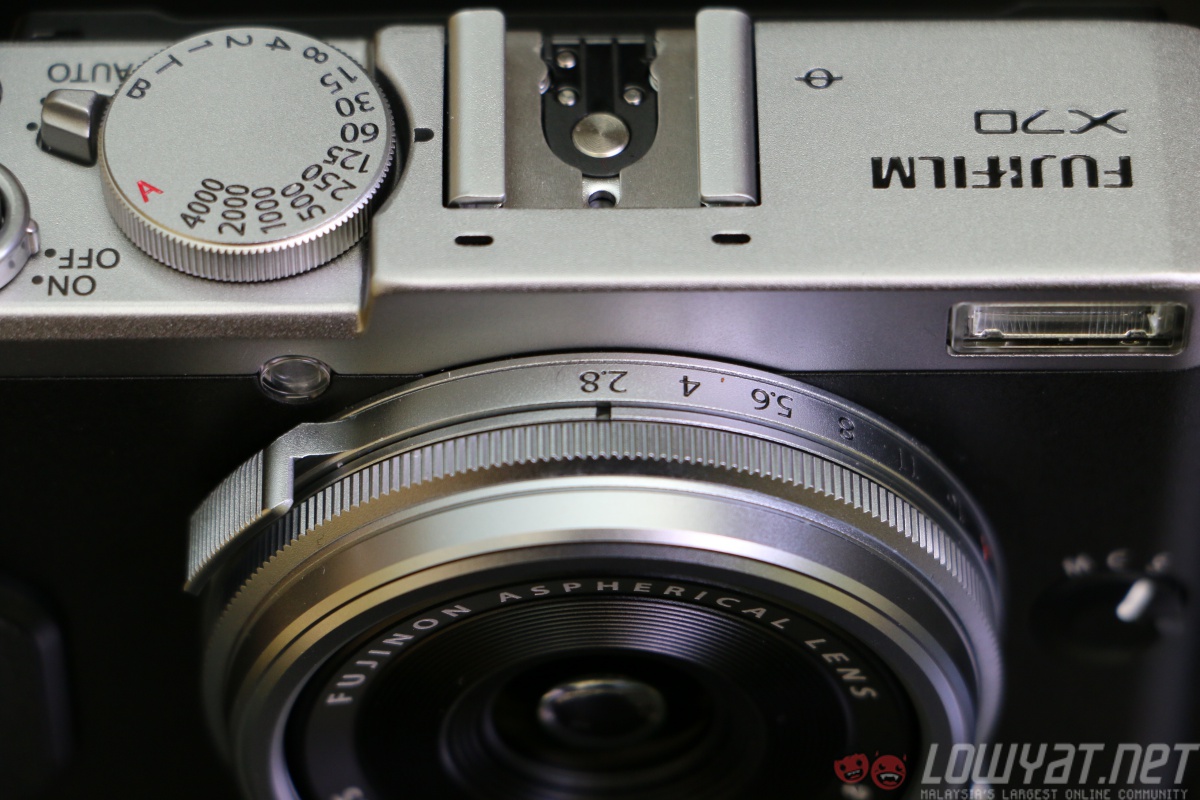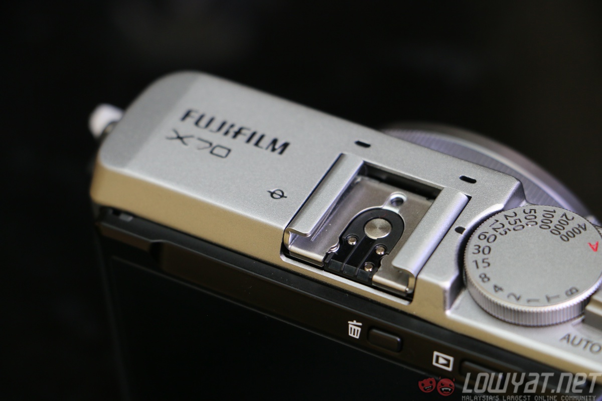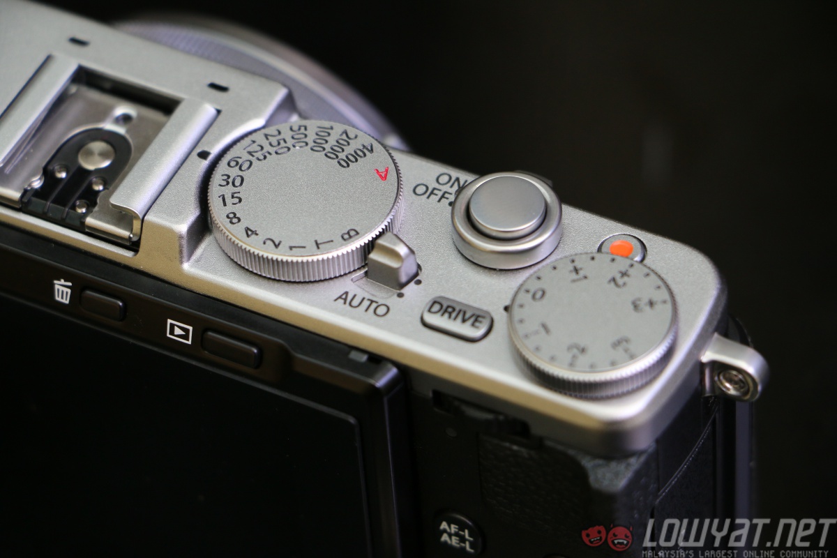 The X70’s top plate consists of shutter speed and exposure compensation dials which are constructed using aluminium, giving the camera a premium look while keeping its overall weight down.