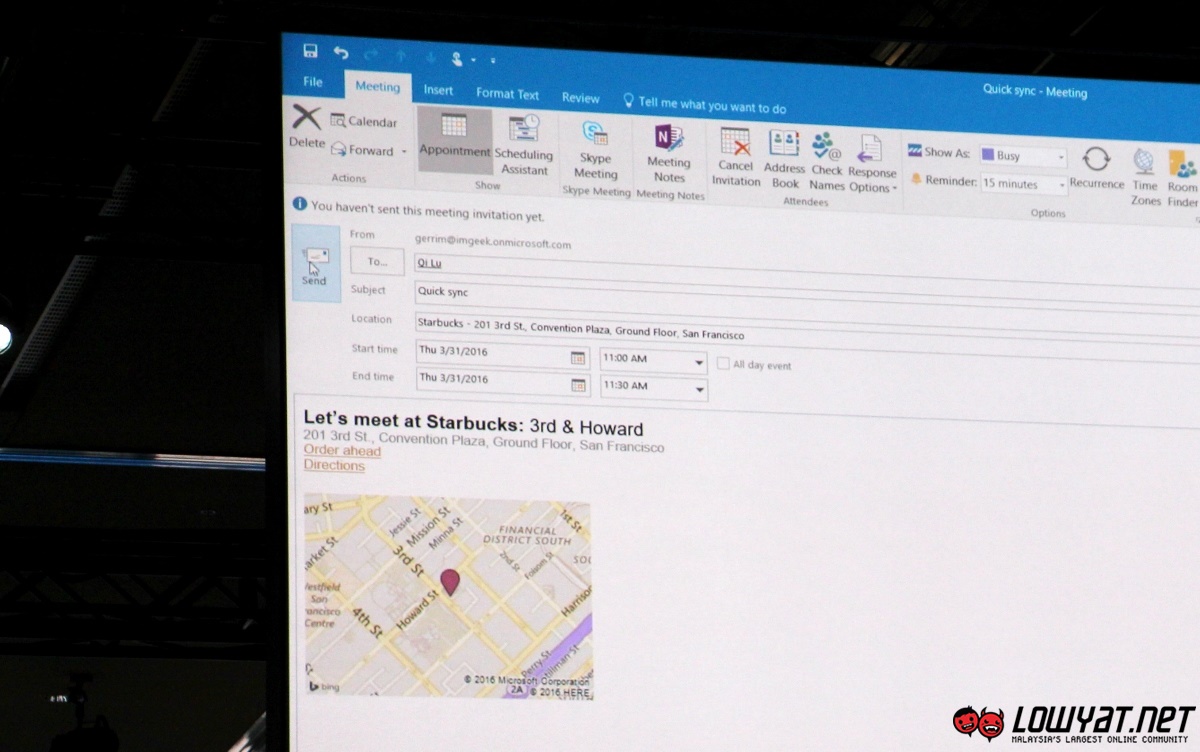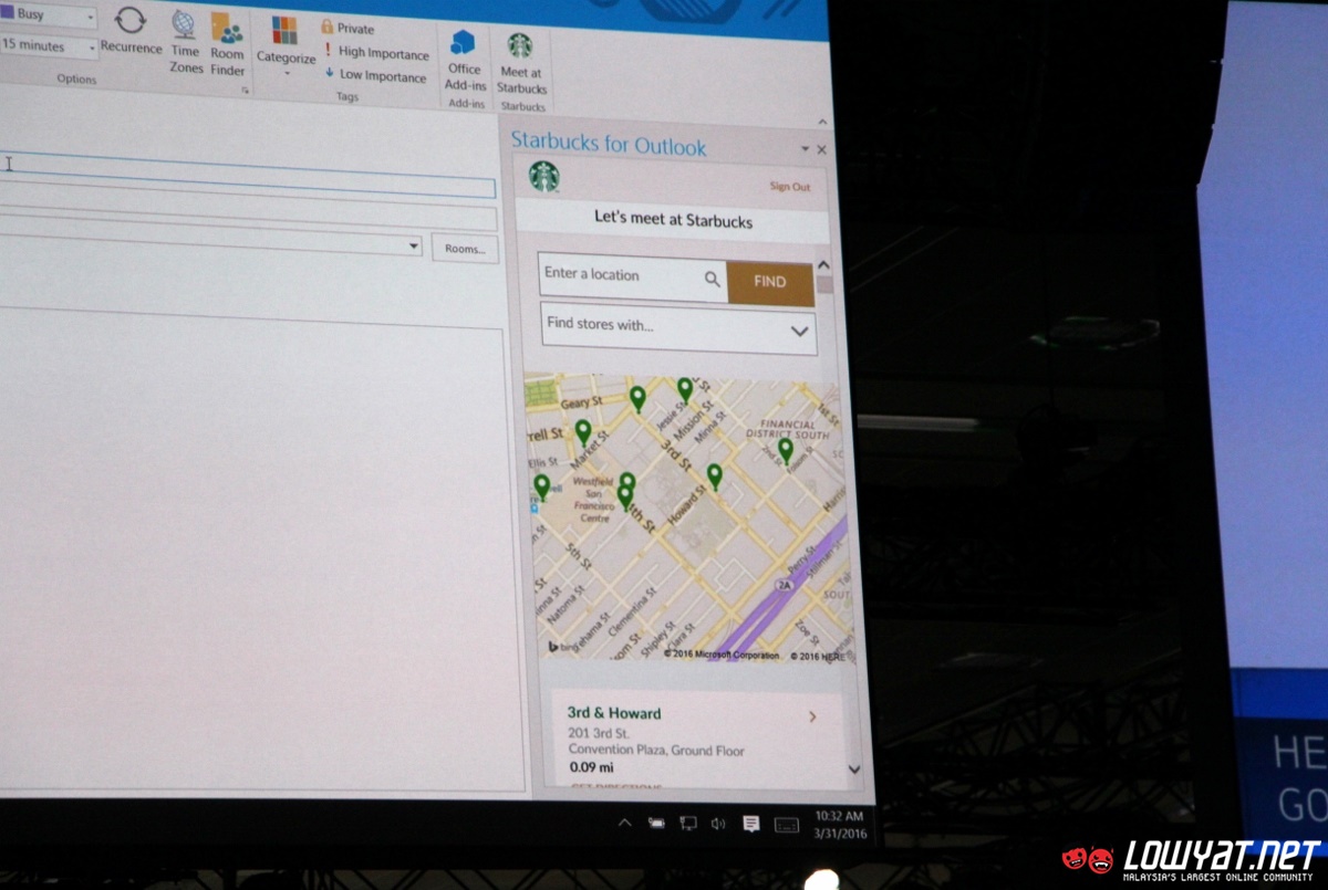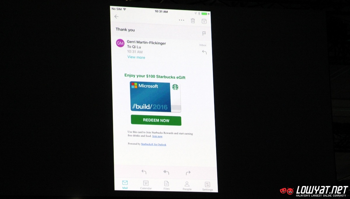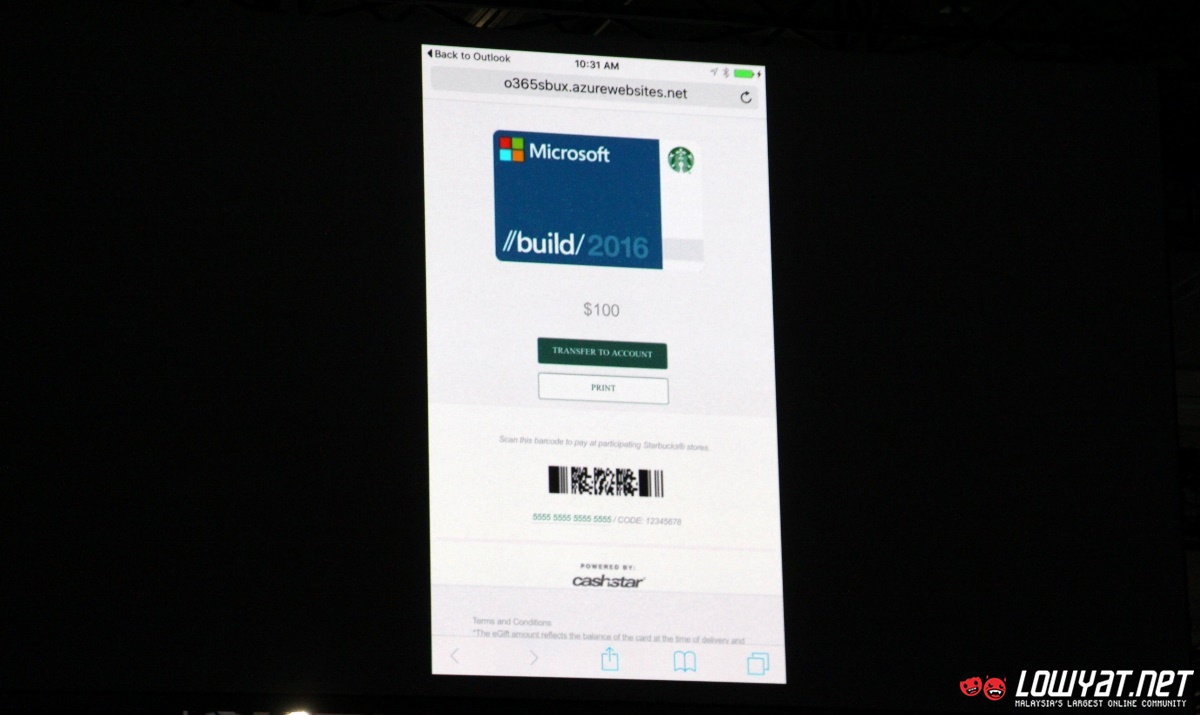 While not shown on stage, Starbucks stated that users will be able to create co-branded Starbucks gift card in the near future too. No exact release date was mentioned though and I doubt that it can be used in Malaysia since Starbucks Malaysia ecosystem are not tied to its US counterpart but nevertheless, the demo not only shows how the Office add-ins are able to enhance users experience but also opportunities within Office ecosystem that are available for developers.