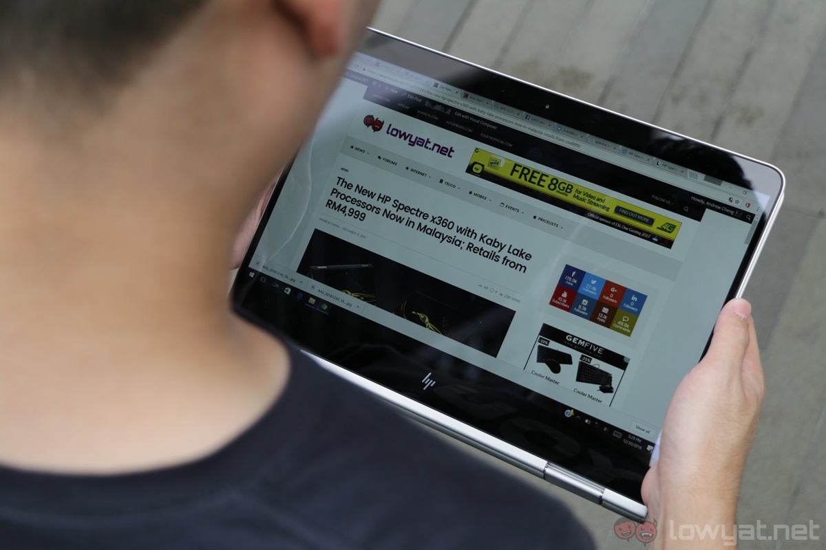 We received the Core i7-7500U variant of the Spectre x360 for this review, which is the highest-end offering in Malaysia. Needless to say, it offers processing power one would expect from a premium productivity laptop. Editing images and running multiple tabs on Chrome – I’m talking about more than 10 active tabs at any given time – was a non-issue for the x360.