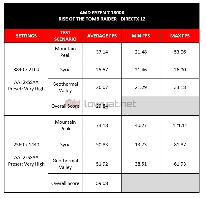 As our gaming tests were done on 4K and 1440p resolutions on high graphics settings, these results are nothing out of the rdinary. In general, they mainly showed that the Ryzen 7 1800X has enough muscle to deliver the necessary firepower needed to run game at those settings. This is especially so when paired with a high-end graphics card such as the NVIDIA GeForce GTX 1080 in our test system.