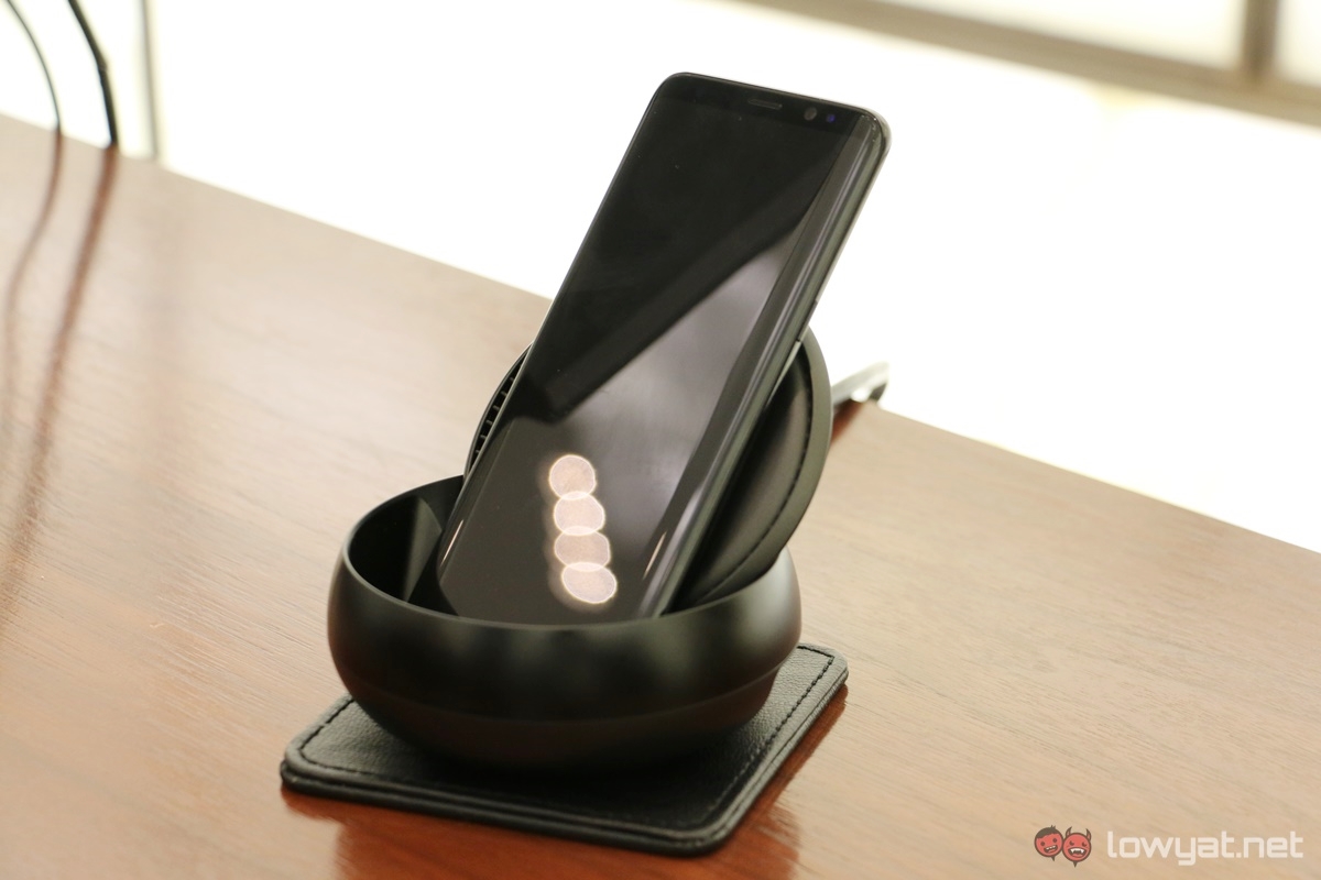 The DeX station itself is a relatively small pocket-sized dock. It features an HDMI port, two USB 2.0 ports, and an ethernet port. Power is provided over a USB Type-C port. Samsung included its Adaptive Fast Charging technology to keep the Galaxy S8 topped up with power for long working sessions; and a cooling fan to manage heat concerns.