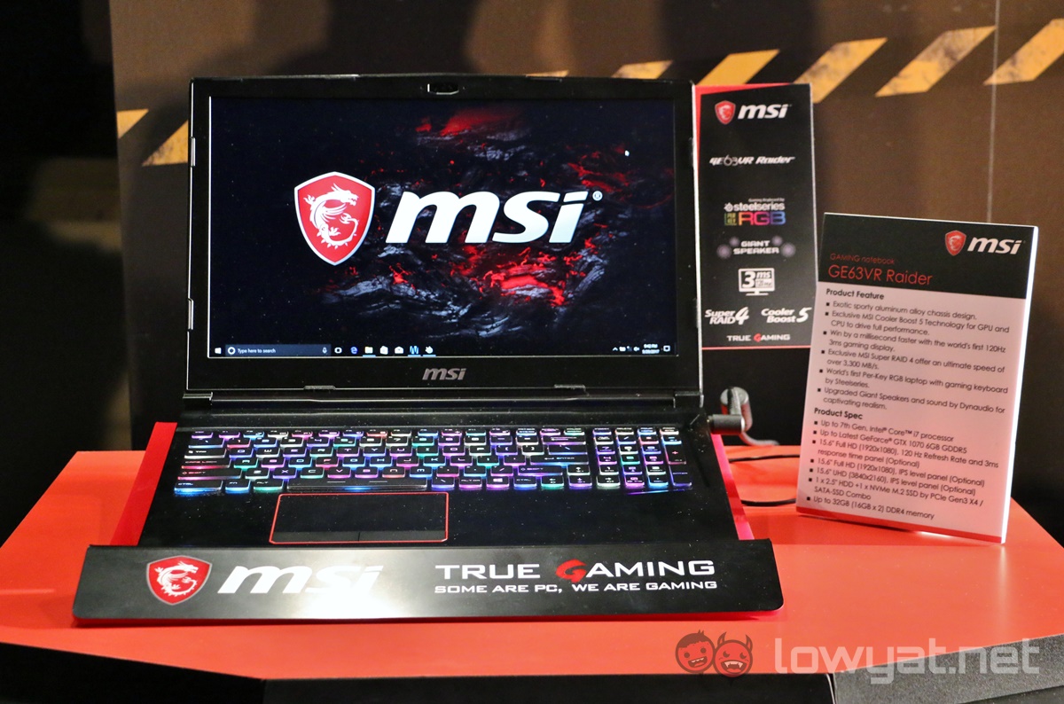 Alongside the larger GT75VR Titan and Vortex G25VR, MSI has also updated its GE series of laptops with the new GE63VR Raider and GE73VR Raider. Targeted at gaming enthusiasts, these upper mid-range gaming laptops also feature displays with 120Hz refresh rates with as low as 3ms response times – a first on MSI on this series.