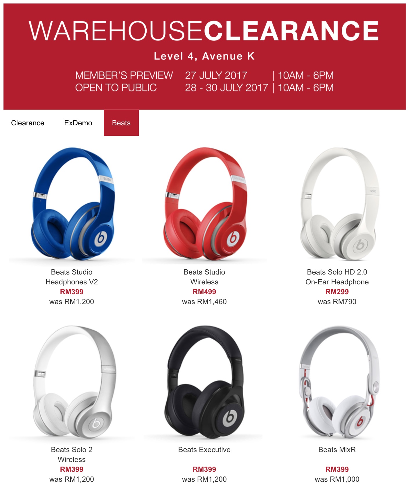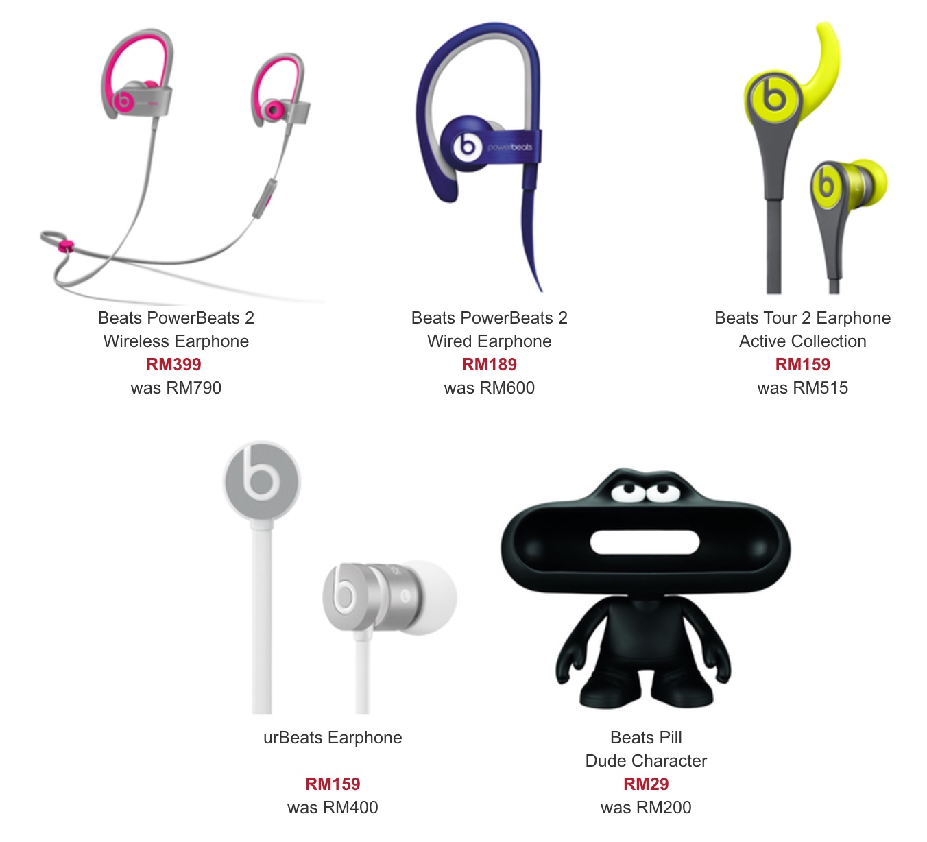 As for accessories, the Machines Warehouse sale will offer Beats Studio Headphones V2 for RM399 (was RM1,200), Beats Studio Wireless for RM499 (was RM1,460), Beats PowerBeats 2 Wireless Earphone for RM399 (was RM790), Beats Pill Dude Character for RM29 (was RM200), and more.