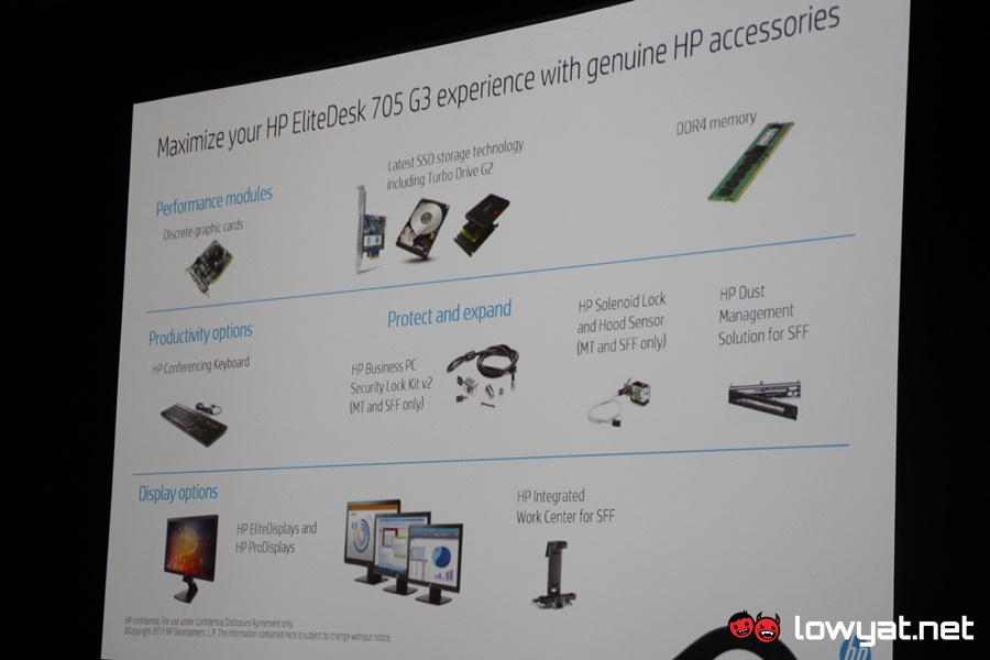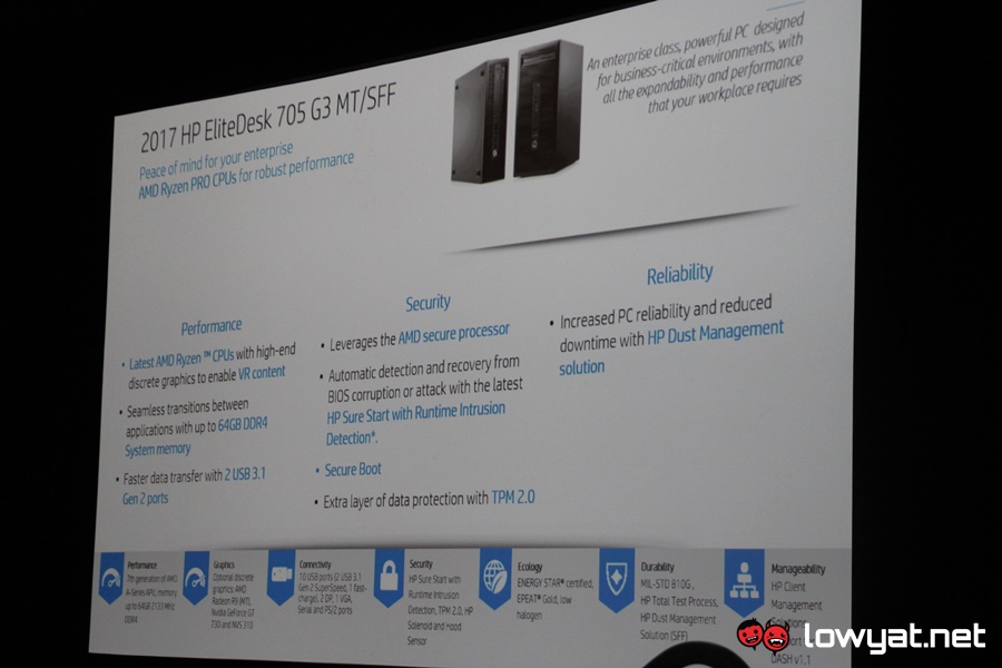 Interestingly, not all Ryzen Pro processors are made available for these systems though. According to the series’ product documentations, only Ryzen 5 Pro 1500 and Ryzen 3 Pro 1200 can be equipped into either Elite 705 G3 models although the system that was on display at AMD Ryzen Pro media event is equipped with the higher-end Ryzen 7 Pro 1700X.