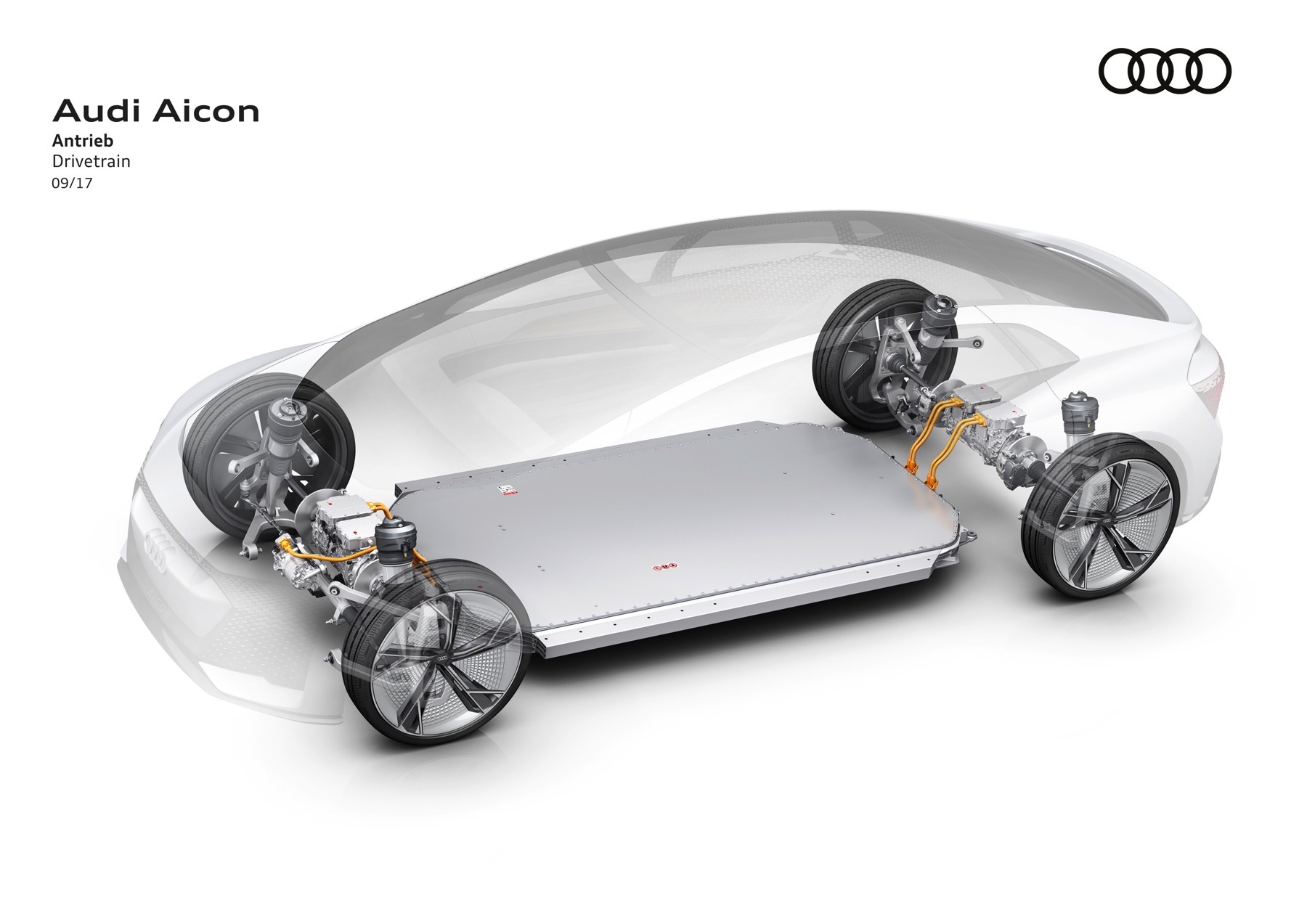 Powering the car are 4 electric motors producing 350hp and 550Nm of torque. Range is targeted to be 700-800km on a single battery charge. With 4 electric motors, the car has variable quattro all-wheel drive. This is Audi’s vision of a Level 5 autonomous car.