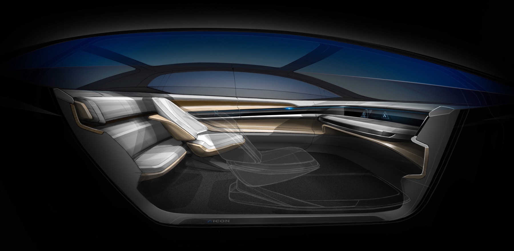The Aicon is designed to be within the D segment and it is longer than the new Audi A8. Covered completely in glass, it gives passengers a sense of free space internally to feel at ease.