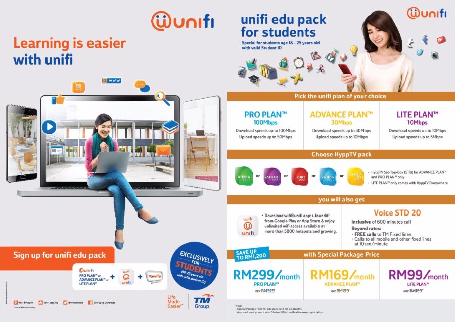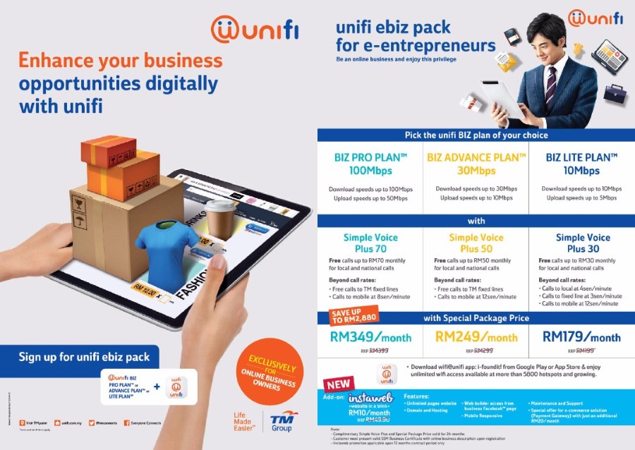 For those who are not familiar with these packs, the new UniFi Edu and eBiz packs generally offer discounts for UniFi Lite 10Mbps, UniFi Advance 30Mbps, and UniFi Pro 100Mbps plans for eligible students and SSM-registered online businesses. The UniFi Edu pack starts at RM 99 per month while UniFi eBiz pack can be obtained from RM 179 onwards per month.