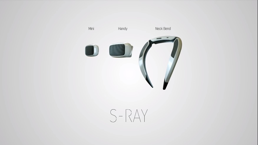 First up is the S-Ray (Sound Ray) portable directional speaker. It’s designed to provide a bubble of sound that only the wearer can hear, taking away the need for earbuds or headphones. The idea is that having the open concept will allow users to be more aware of their surroundings and avoid blocking out important audio cues from the real world.