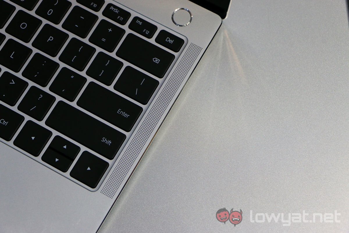 Given that this is a 13.9-inch display fitted into a 13-inch chassis, it is surprising that Huawei even manages to fit four Dolby Atmos speakers onto the MateBook X Pro. Two speakers lie on the left and right sides of the keyboard, while another two fire downwards on either side of the laptop. Heat dissipation is similar to the MacBook Pro and Dell XPS 13, where hot air is channeled out beneath the display.