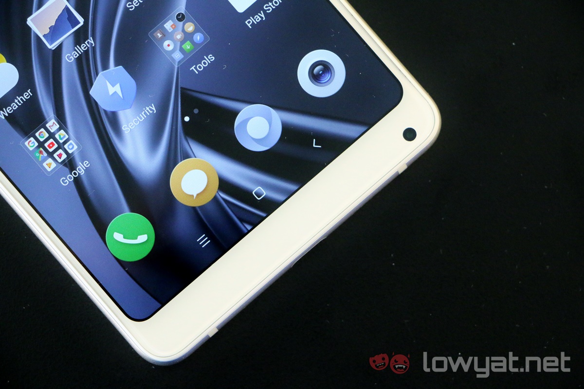 The ceramic back is said to be more scratch resistant than glass, but is just as prone to fingerprints. For this reason – and the dual-camera module’s slight hump – Mi Mix 2S owners may need to get a case to go along with their purchase.